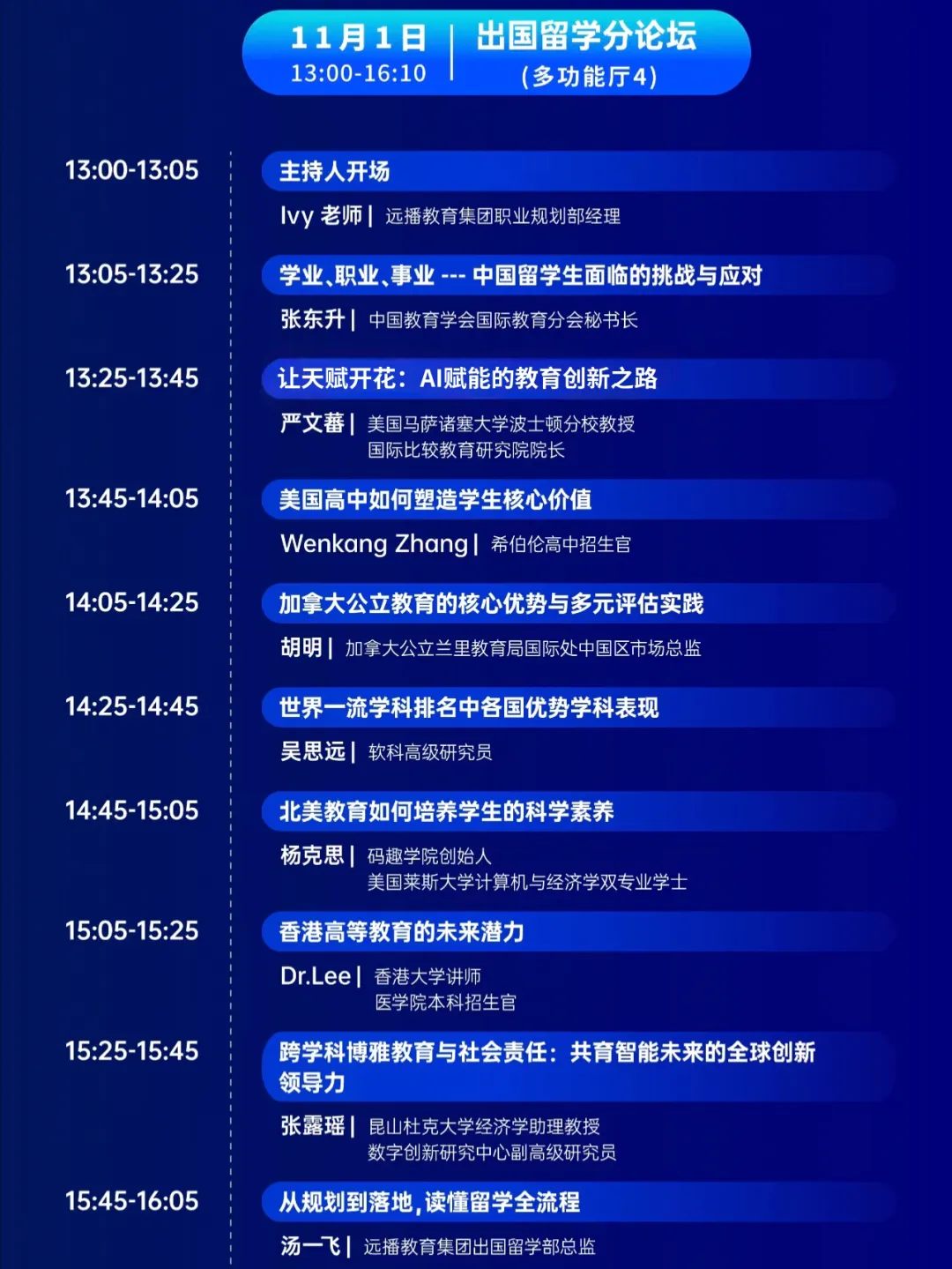伴随教育全球化的演进,国际升学步入多元化时代。本论坛致力于解析不同留学国家的升学政策演进与路径逻辑,剖析不同教育体系下的人才评价标准,从战略层面助力家庭理解不同教育文化对成长轨迹的深远影响,在教育选择中做出精准、长远且契合个体发展的决策。