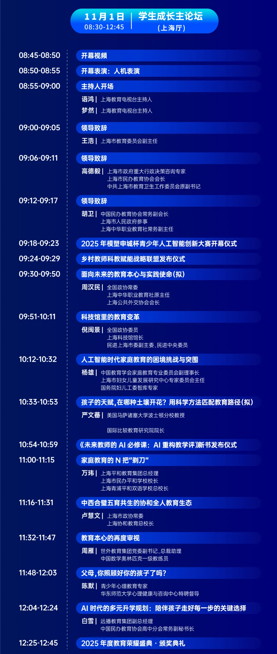第八届IEIC国际教育创新大会现场将汇聚全球知 名教育学者、专家及一线教育实践者,共同探讨未来教育的发展路径。议题涵盖AI数智赋能、全人教育发展、多元文化融合、孩子学业规划与身心健康等核心领域,为学生构建兼具学术深度与人文关怀的全方位成长蓝图。