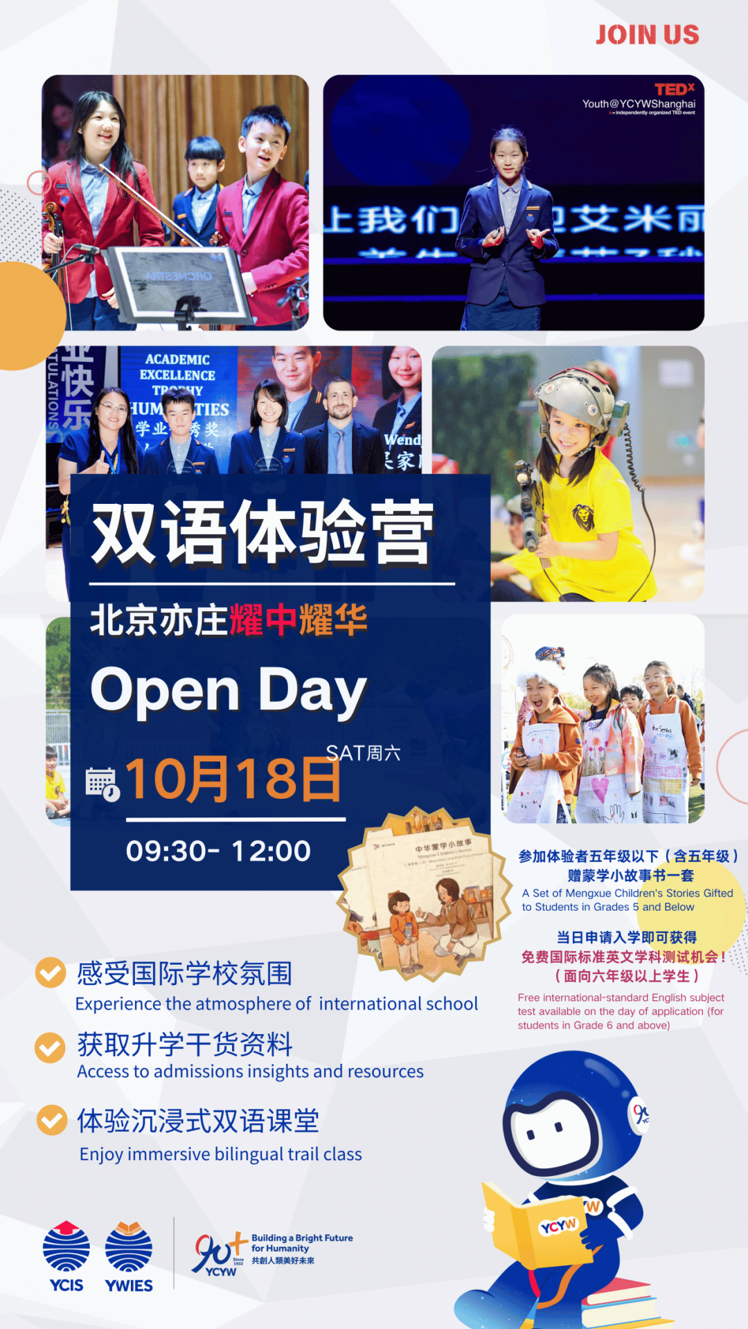 想亲眼见证中西融合教育的魅力吗?想知道如何让孩子兼具文化底蕴与全球视野吗?北京亦庄耀中耀华开放日来啦!