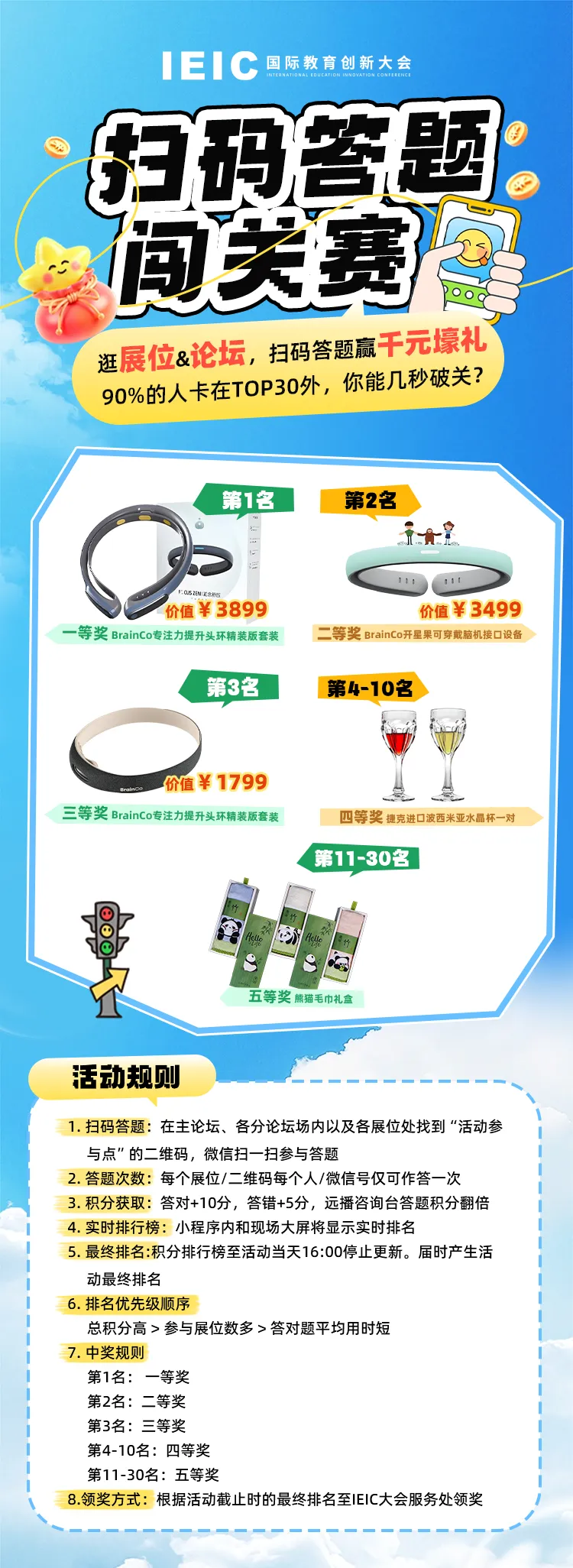探索优质教育资源的同时,还能收获专属纪念奖品,IEIC扫码答题闯关赛等你来战!11月1日,上海浦东嘉里大酒店,记得和小伙伴一起来闯关冲榜哦~