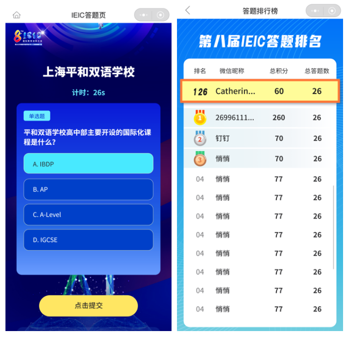 排名规则:积分排行榜至活动当天16点截止,优先级顺序依次是:总积分高>参与展位数多>答对题平均用时短;