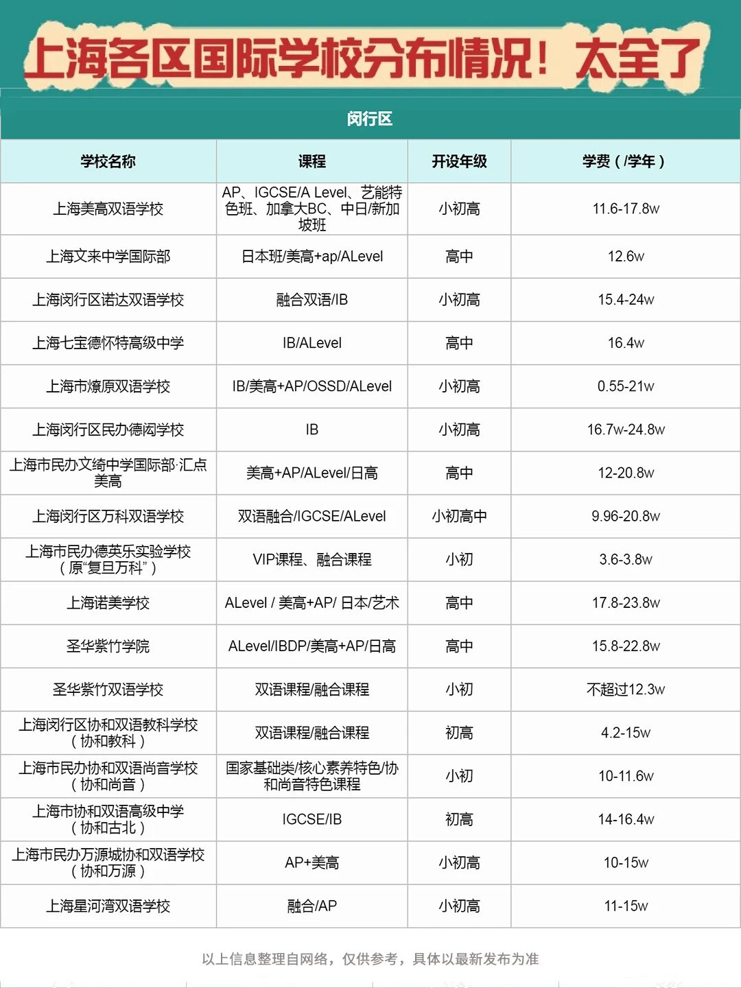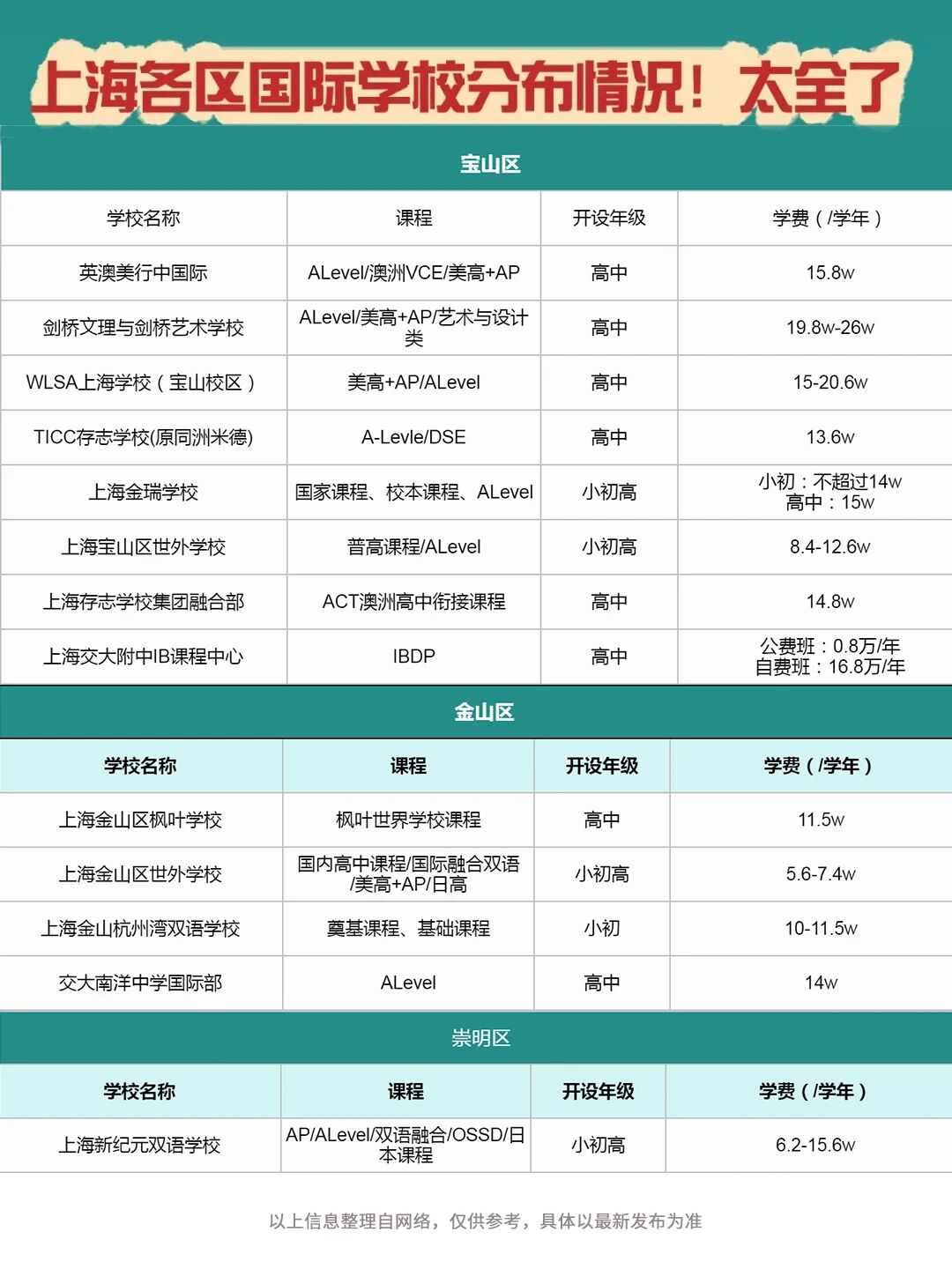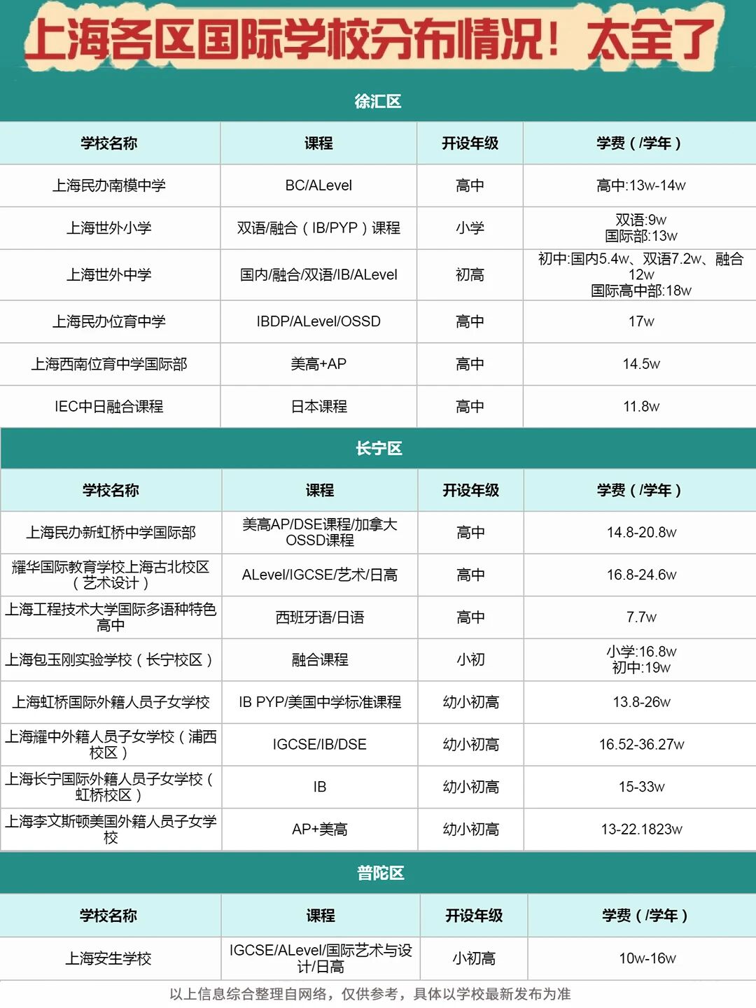 代表校有wlsa、宝山世外、交大附中IB等热门学校。