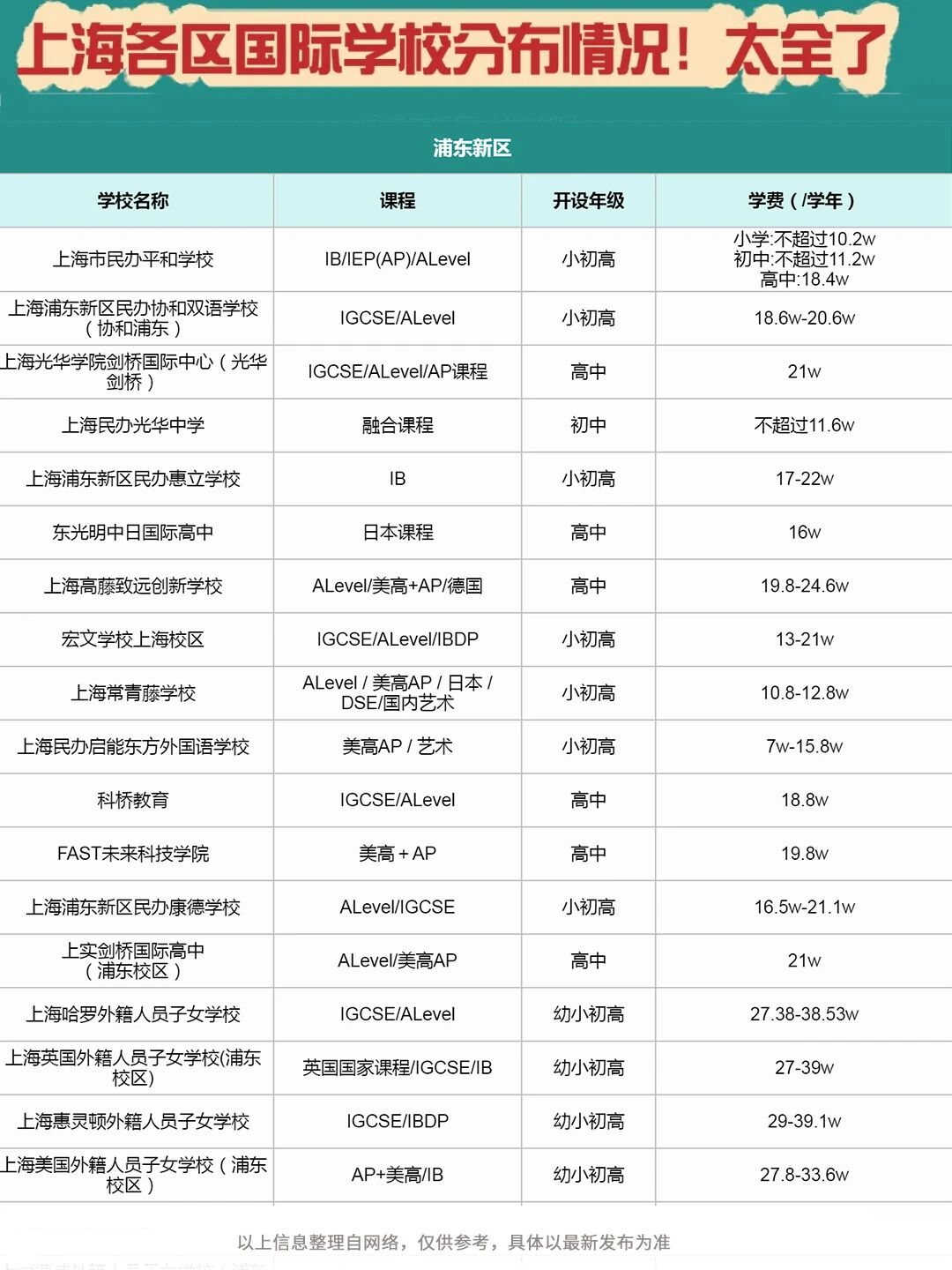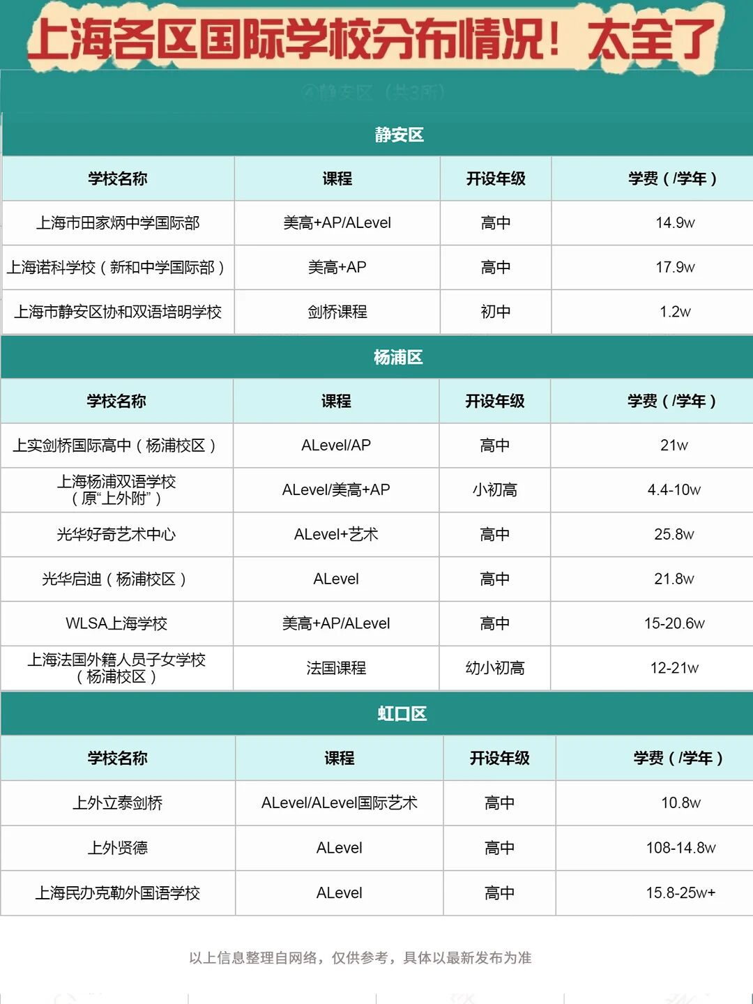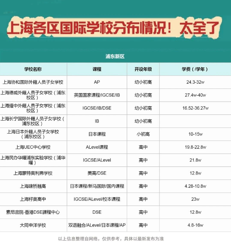 代表校有wlsa、宝山世外、交大附中IB等热门学校。