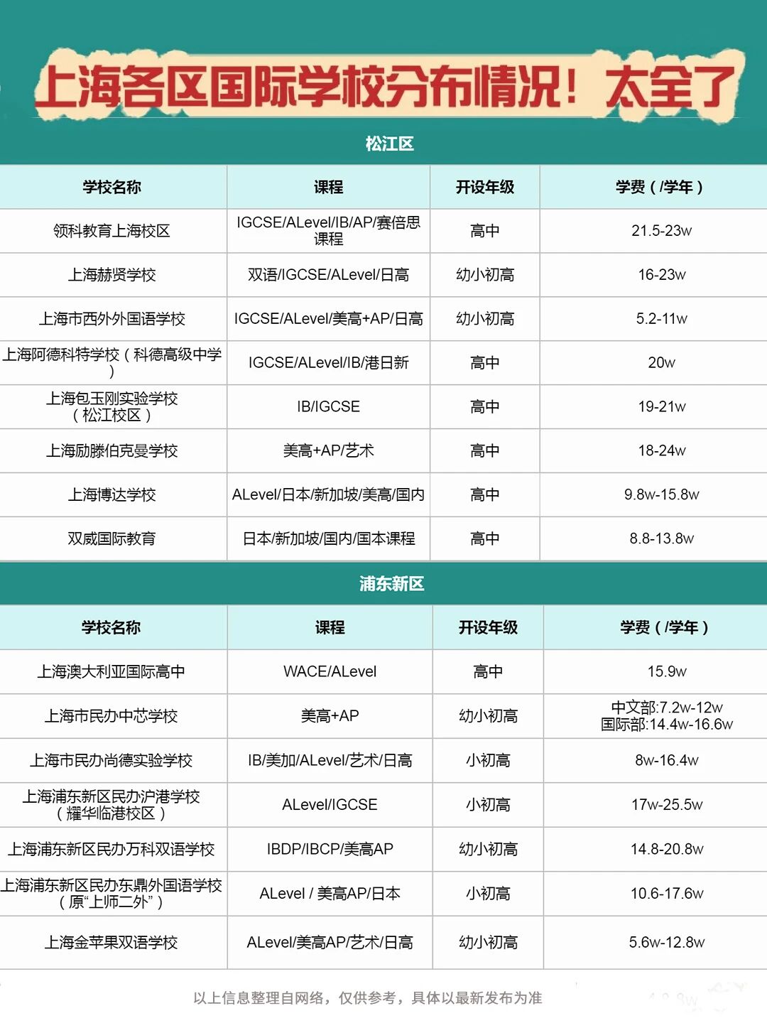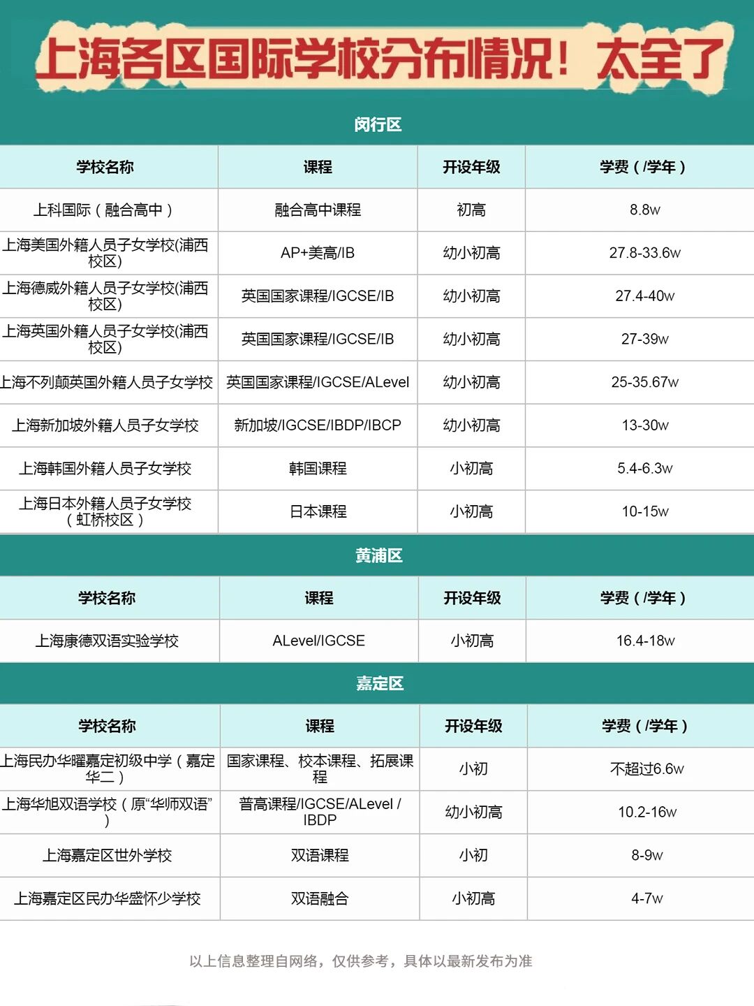 🏠上海国际学校都有哪些?这是近期很多考虑给孩子找学校的家长会的问题。在此,我们为大家整理了上海16个区的国际学校清单,包含课程体系、开设阶段,还有大家比较关注的学费~