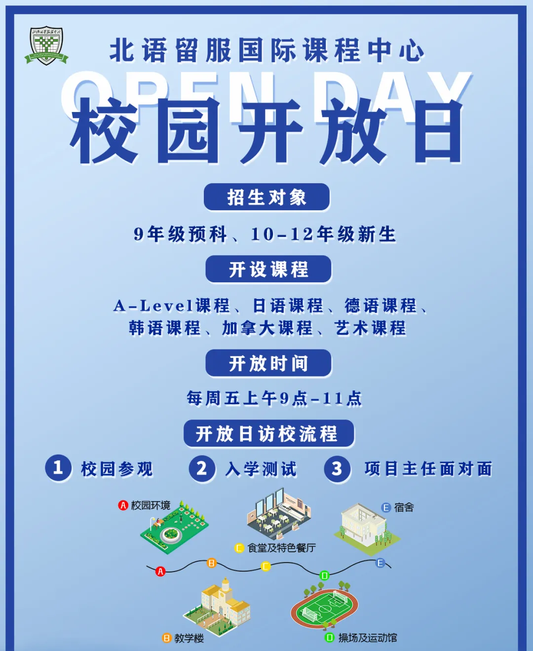 亲爱的家长们,北语留服国际课程中心校园开放日每周五开启,诚邀您与孩子一同走进校园,了解多元国际课程与升学规划。
