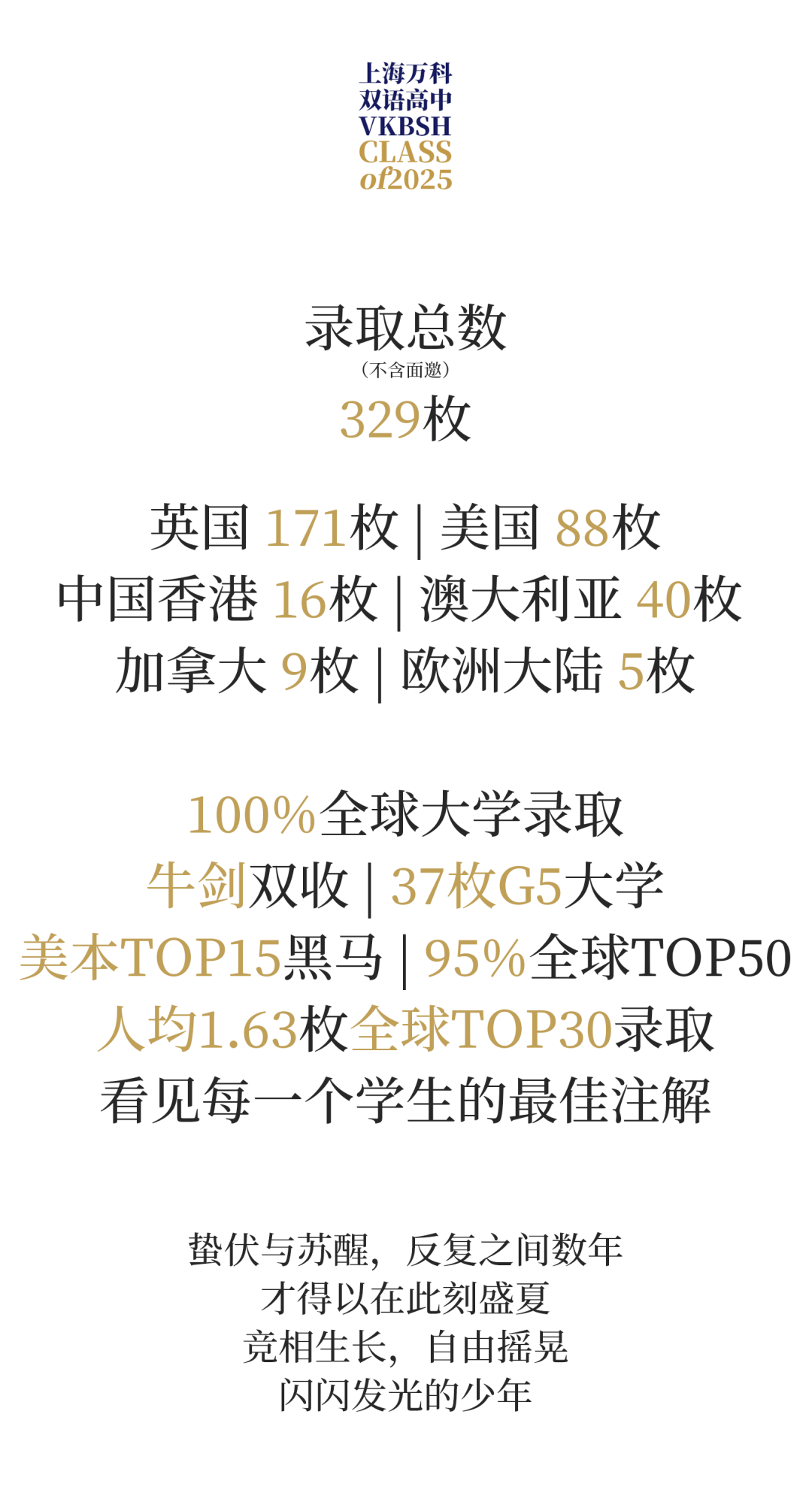 2021年首届毕业生便斩获剑桥大学录取。自2021年至2025年,连续5届201名毕业生收获1000+枚offer.