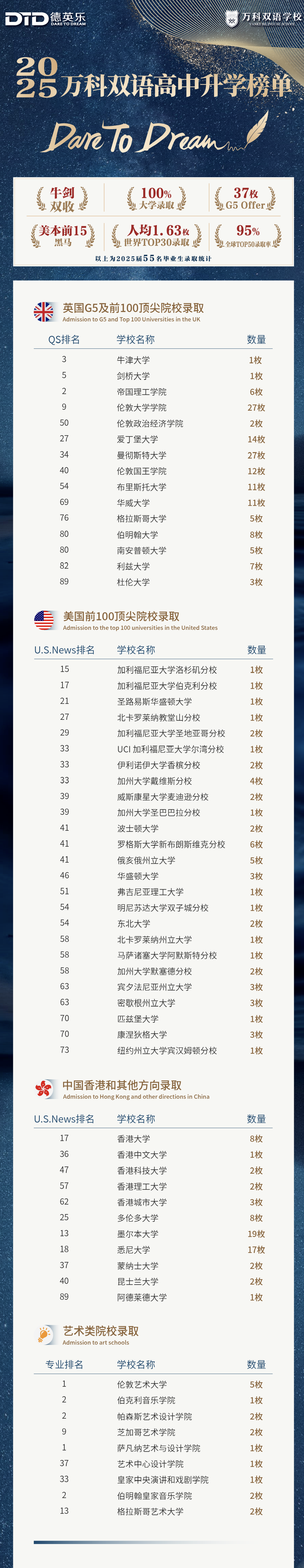1枚牛津大学、1枚剑桥大学、6枚帝国理工学院、25枚伦敦大学学院、2枚伦敦政治经济学院,共计37枚G5录取;