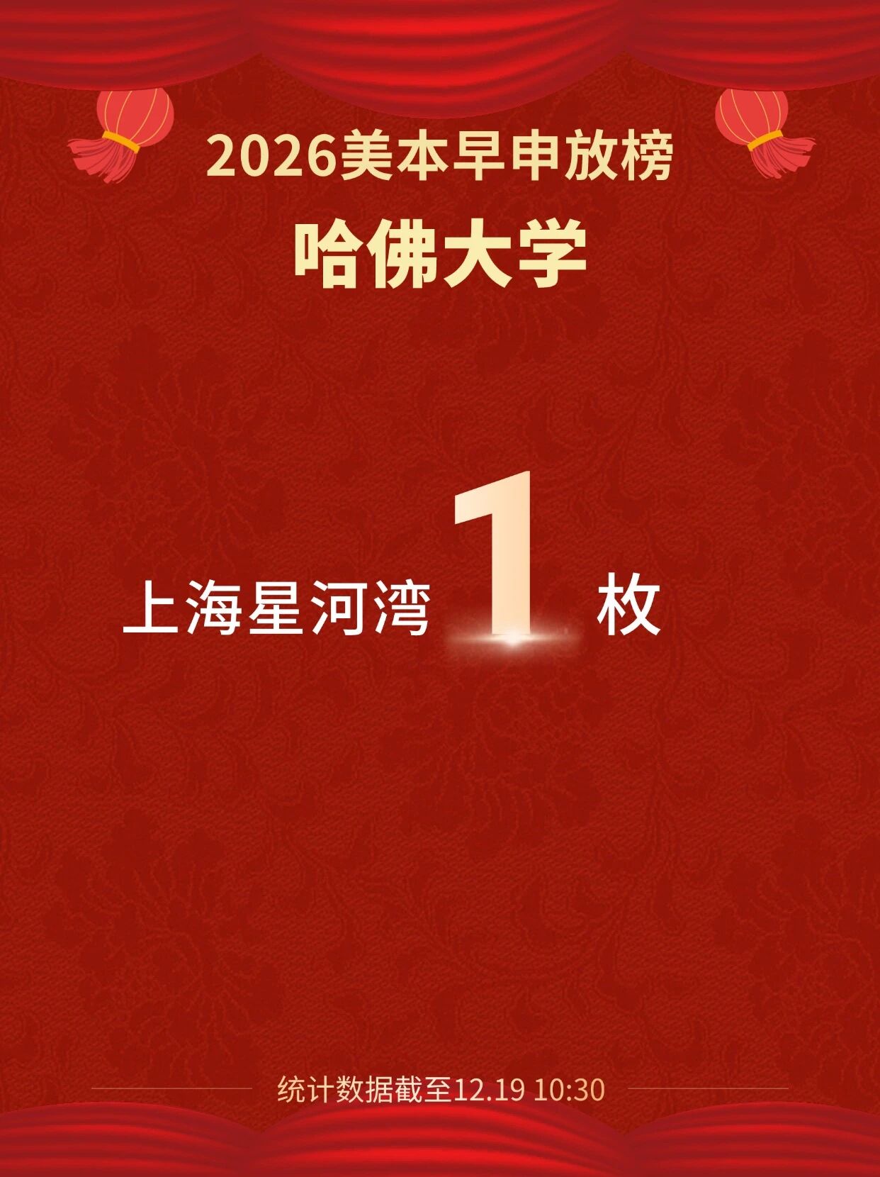✅哈佛大学国内统计到1枚,花落上海星河湾学校,取得了历史性突破;此外,美国学校据说也斩获1枚哈佛录取,我们也会持续关注;