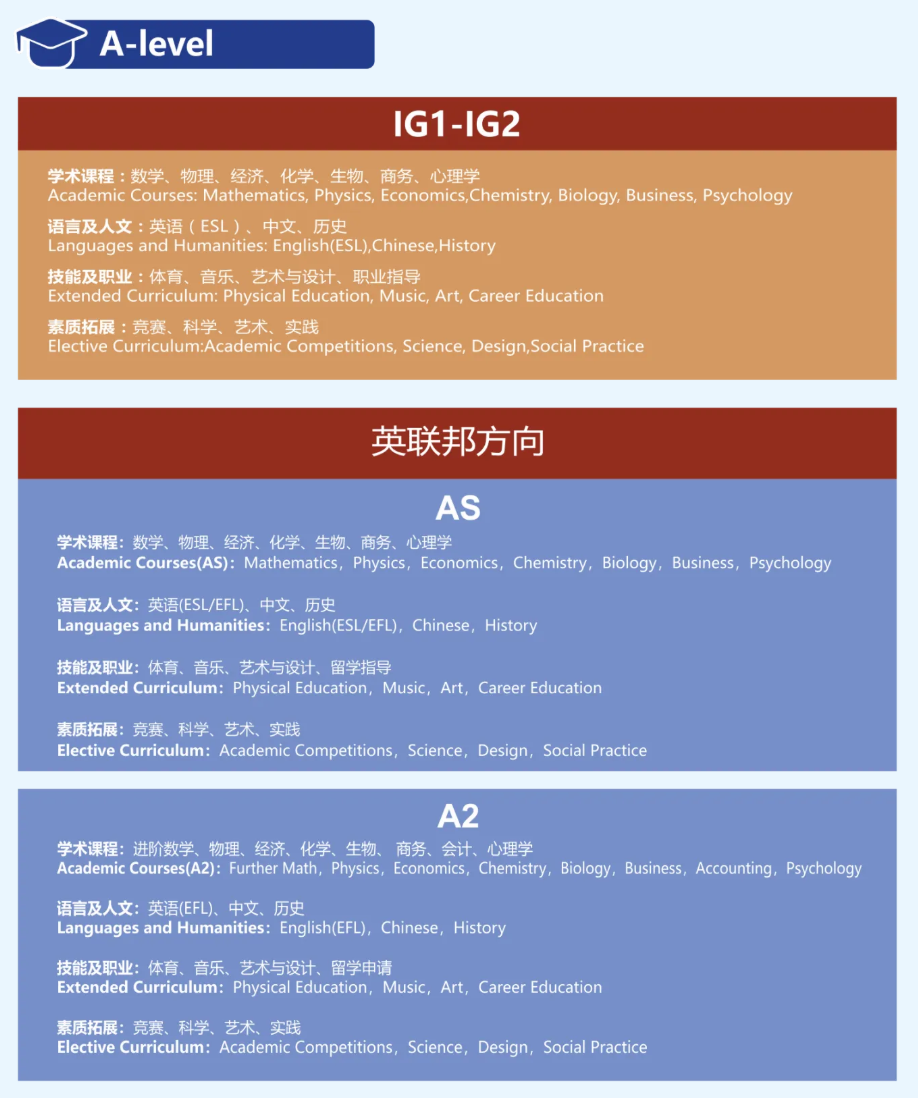 课程体系:A-Level、双语融合