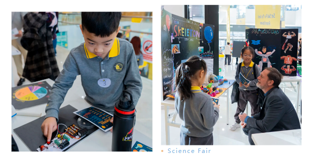 今年的科学展共呈现了30余组来自班级及个人研究的学习成果项目,均围绕现实世界中的科学现象展开,主题涵盖可再生能源、机器人技术、声音科学与重力原理等多个领域。