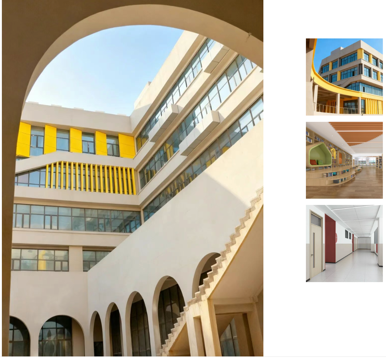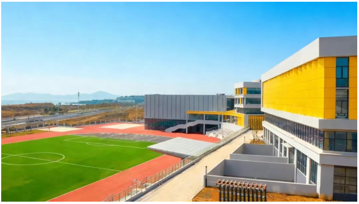 隔着一条公路便是无垠蓝海,明黄色的教学楼与绿色操场相映成趣,海风与书香在这里交织成独特的校园旋律。走进这座校园,每一处空间都藏着助力成长的巧思。