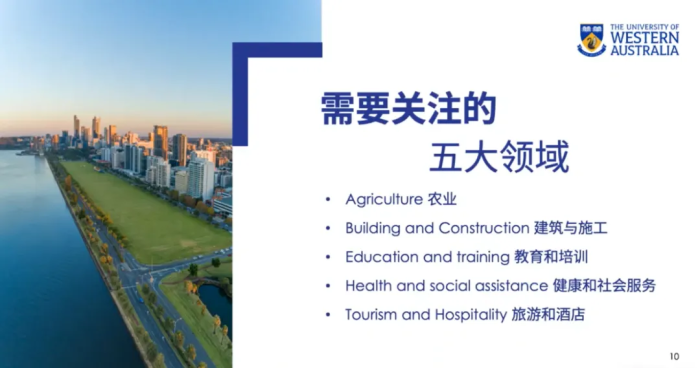 西澳洲目前是澳大利亚各州经济增长表现好的地区,远高于国家平均水平,基础设施建设、消费实力、对外贸易稳步增长,农业、工程、教育、健康与社会服务、旅游五大领域在当地就业市场需求巨大。