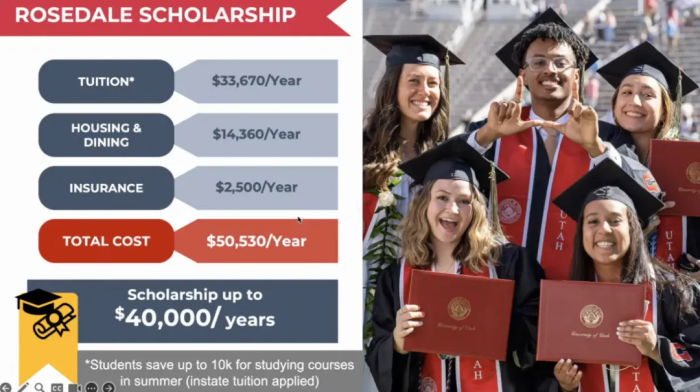 特别是在每年1w美元、连续4年的罗斯德专属奖学金加持下,就读犹他大学年学费+生活费仅需35w人民币左右!