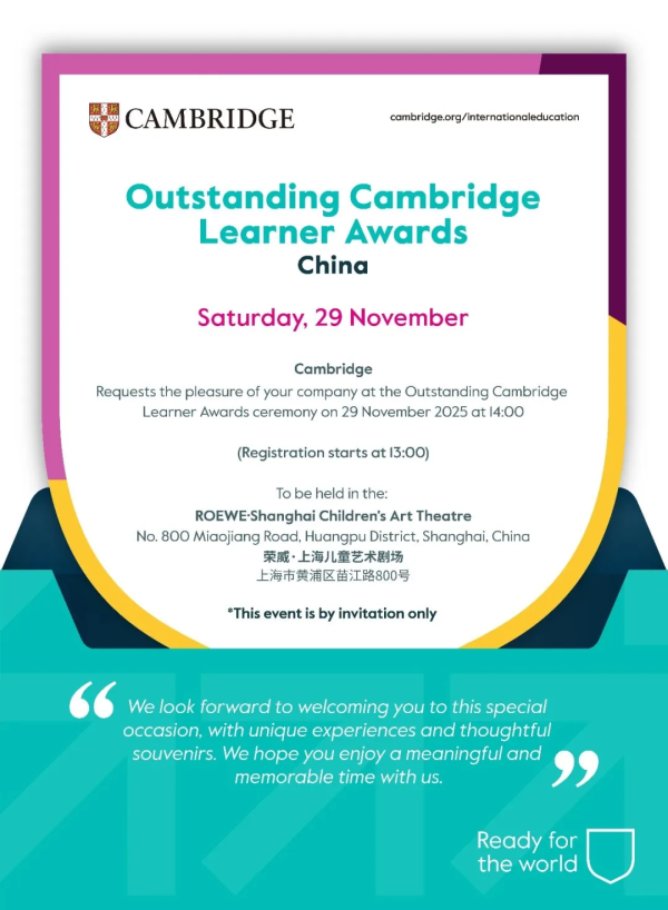 剑桥卓越学子奖,由剑桥大学国际考评部设立,每年从全球160多个国家和地区的数十万名考生中,甄选出在剑桥国际课程考试中取得卓越成绩的学生。