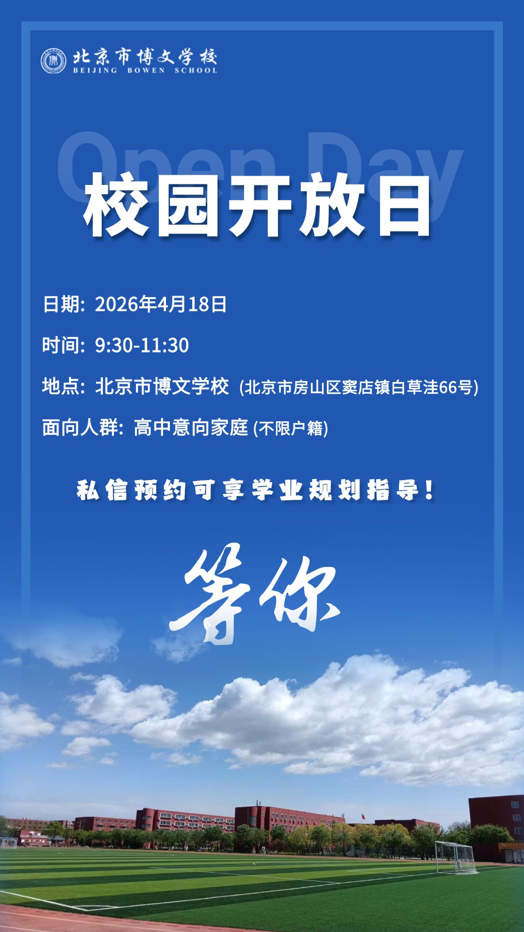 *北京市博文学校招生考试、开放日报名通道已开启