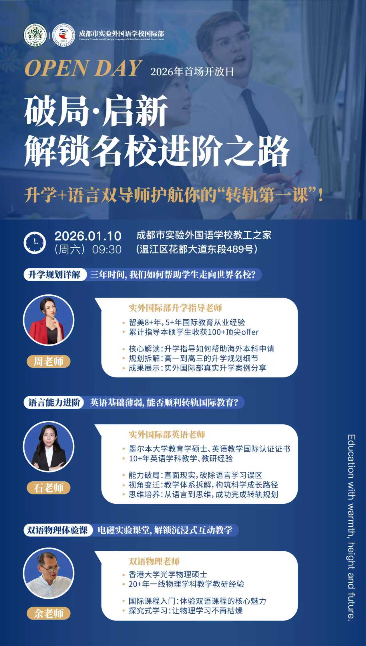 实外国际部结合西南地区国际教育家庭的需求,依托成实外教育国际事业部的全球资源,经过精心地筹备、学习、打磨、实战积累,在办学9年间,取得了突破性的录取和良好的家长口碑,个性化地帮助无数学子实现高分逆袭,多次获得包括《2022京领中国国际学校特色榜·语言特色榜》全国TOP20、《2023京领中国国际学校品牌价值百强榜》西南TOP3在内的各项成绩。毕业生连续多年获得伦敦大学学院、爱丁堡大学、香港大学、埃默里大学、墨尔本大学、多伦多大学等世界院校的录取offer,去往进入英国、美国、中国香港、加拿大、澳大利亚、瑞士、法国等全球不同国家及地区 。