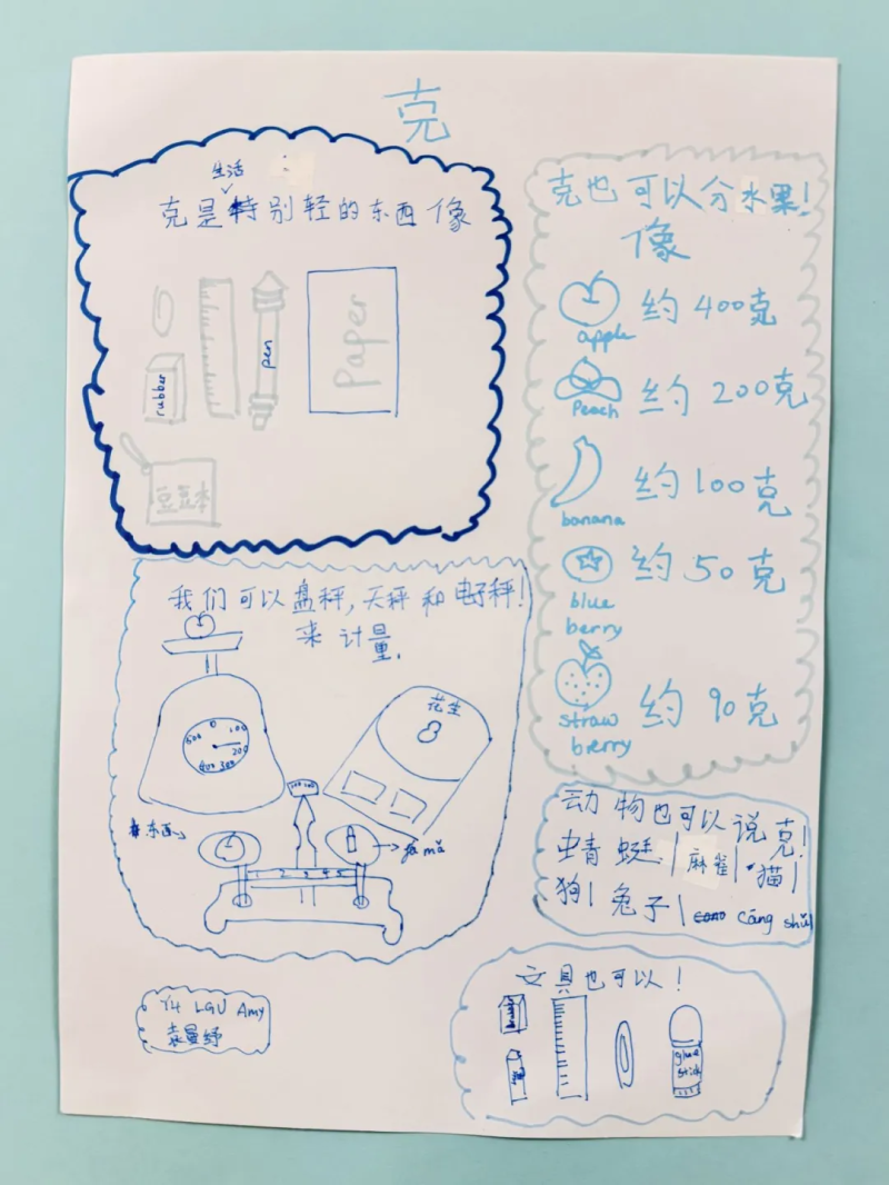 英文数学的评估既嵌入课堂,也体现在阶段性测试中。老师在每堂课上通过练习本记录、课堂拍照、口头回答以及实践展示等多种方式,实时捕捉每个孩子的学习证据,及时发现并纠正误解,同时为掌握较好的学生提供更具挑战性的任务。