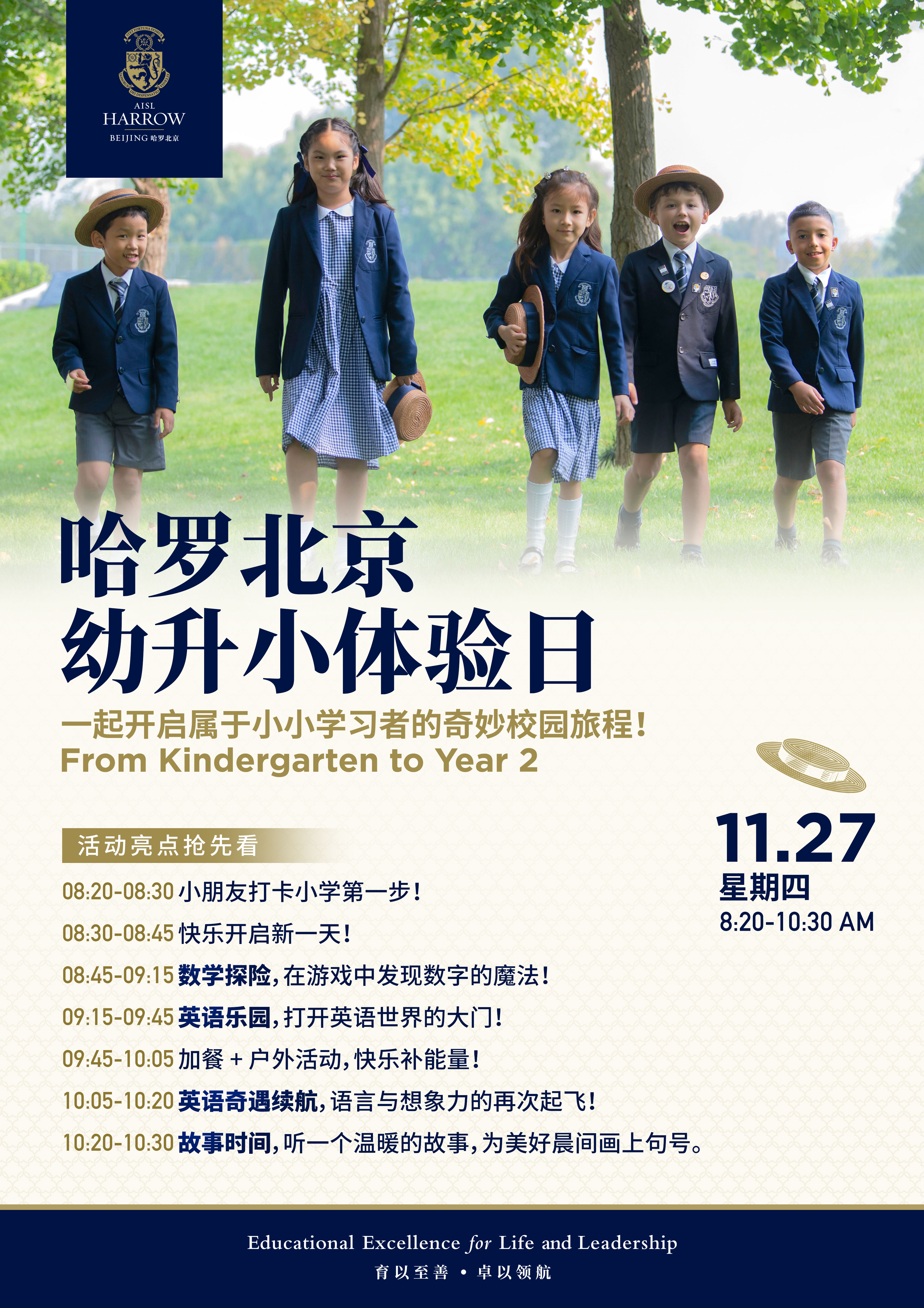 对于即将步入小学的孩子来说,真正认识一所学校,最 好的方式就是“亲自来体验一次”。为此,哈罗北京特别推出幼 升小体验日活动,希望家长和孩子能在真实课堂与校园环境中,切身感受未来几年将要度过的学习生活。