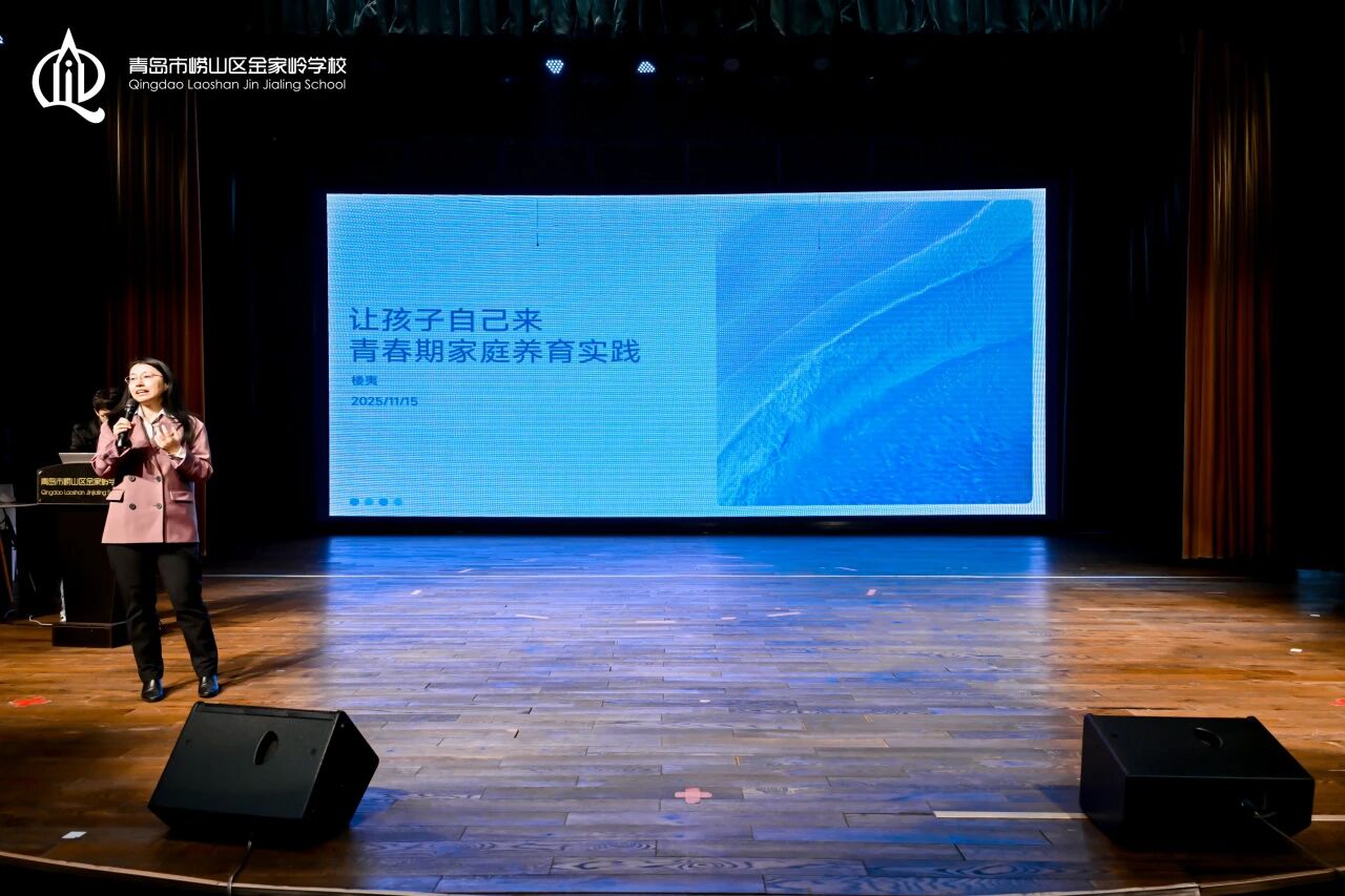 2025年11月5日,在这个秋意正浓、层林尽染的美好时节,青岛市崂山区金家岭学校初中部第三届家庭教育论坛于雏鹰小剧场温馨启幕。本次论坛延续“把孩子放在心上”的初心,围绕青春期成长的核心命题,设置主论坛与圆桌论坛,旨在凝聚家校共识,共绘成长蓝图。