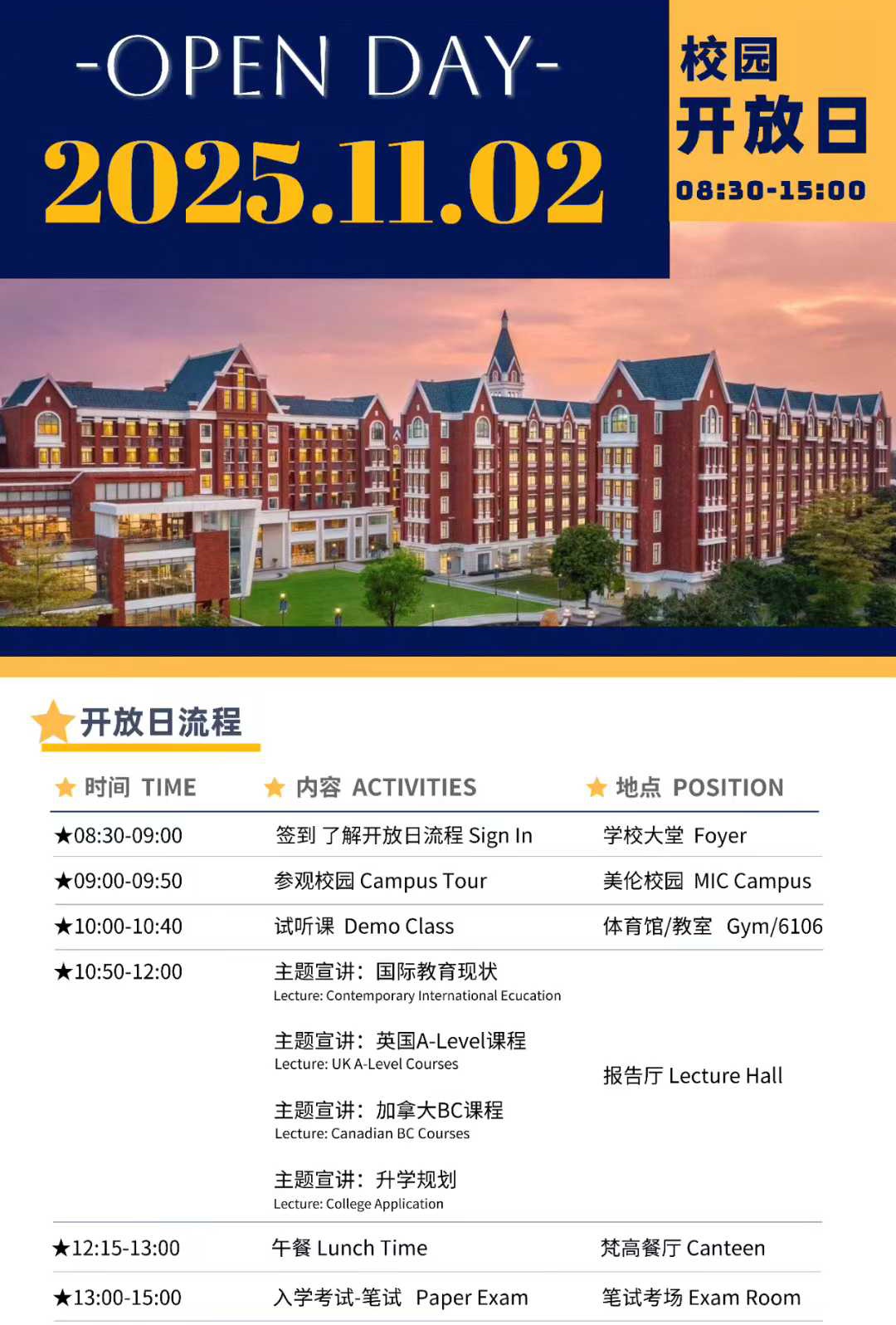 *美伦国际教育招生考试、开放日报名通道已开启