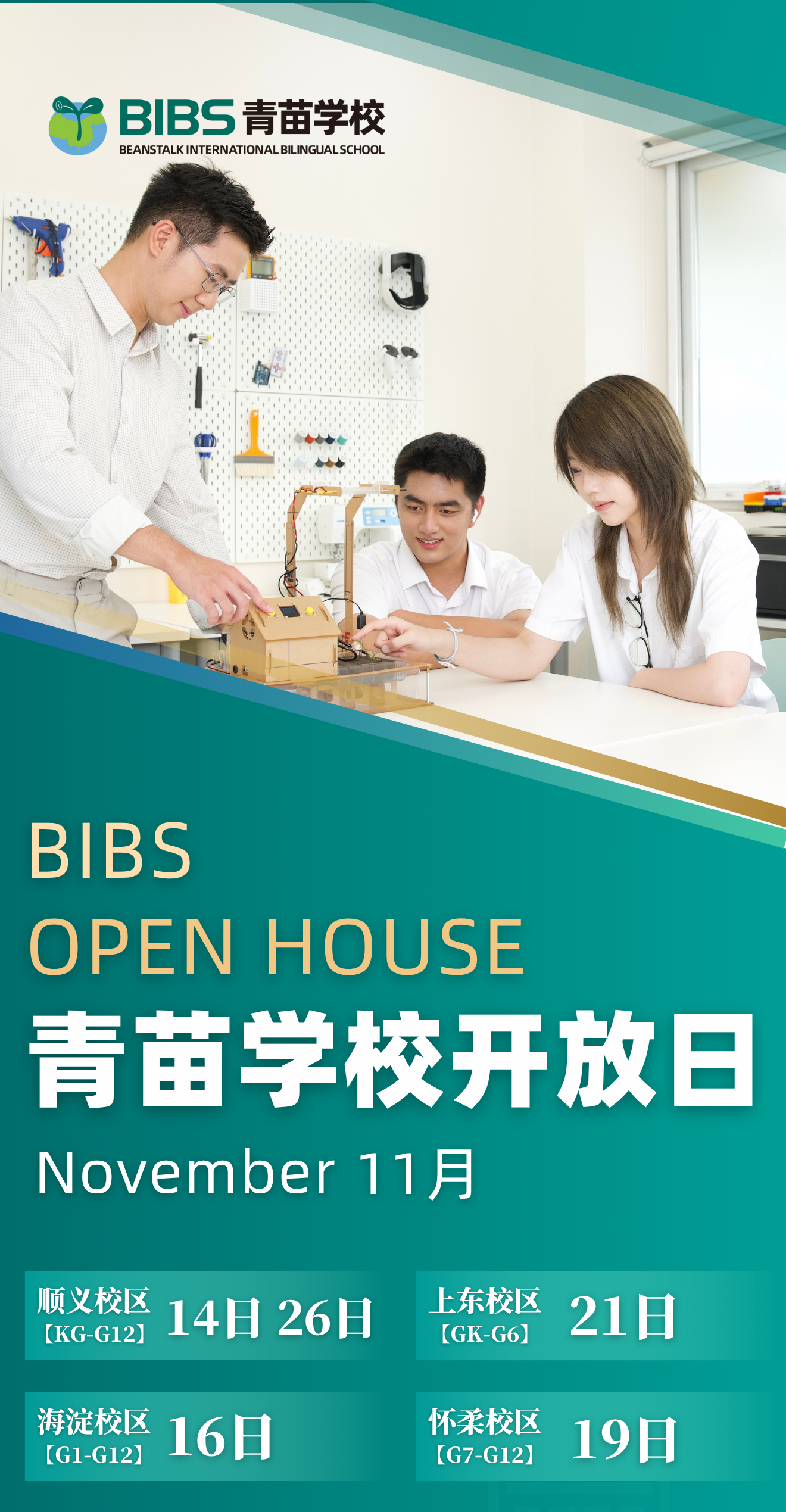 亲爱的家长们,BIBS 青苗学校(Beanstalk International Bilingual School)11 月开放日系列活动即将开启!本次开放日覆盖多个校区,为不同学段家庭提供深度探校机会,诚邀您与孩子一同走进青苗,感受双语教育的独特魅力。