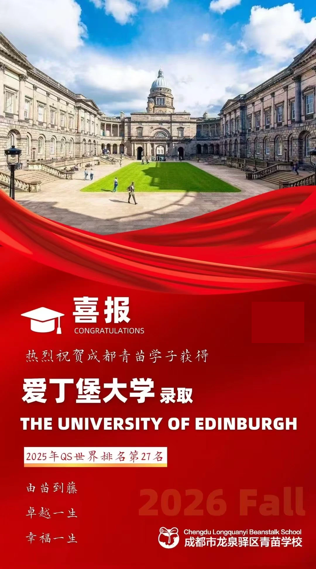 爱丁堡的严谨、曼彻斯特的创新、匹兹堡的学术声誉、利兹的专业、伯明翰的悠久历史、瓦赫宁根的全球学科地位……这些风格各异的世界学府纷纷向青苗学子抛来橄榄枝,正是对青苗学校“融贯中西,全人教育”理念的回响。