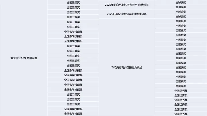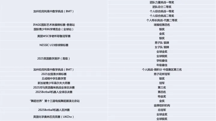 2025年,青苗学子在近50项全球权威学术竞赛中摘金夺银。从数理化奥林匹克到机器人、商赛、体育、艺术,孩子们不仅凭借知识储备脱颖而出,更以自信从容的表达力征服赛场。“以赛带学”的理念,让青苗学子在更大的学术平台上,找到了属于自己的赛道,成为了更好的自己。