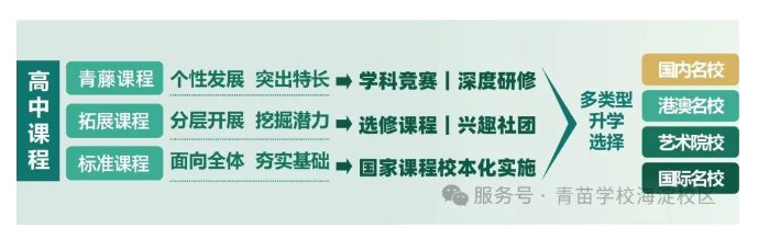 海淀区青苗学校通过不同课程体系培养模式,依托集团28年丰富的全球升学资源及经验,为学生铺设多元化升学路径,让每位学生都能感受到 “视野开阔、多元发展、一校多途、专业指引”的升学特色。