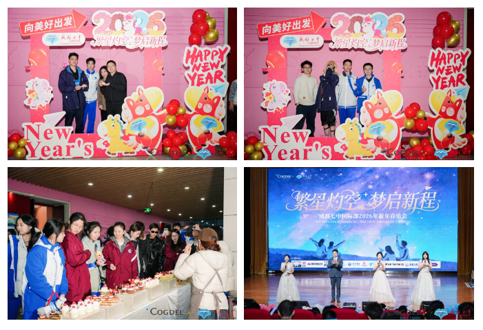 成都七中国际部“繁星灼空,梦启新程”2026新年音乐会在师生与家长的共同期待中精彩上演。整场音乐会以星光与梦想为主线,分为“相遇・逐光”、“绽放・灼空”、“启航・筑梦”三大篇章,展现国际部学子昂扬向上的青春风貌。