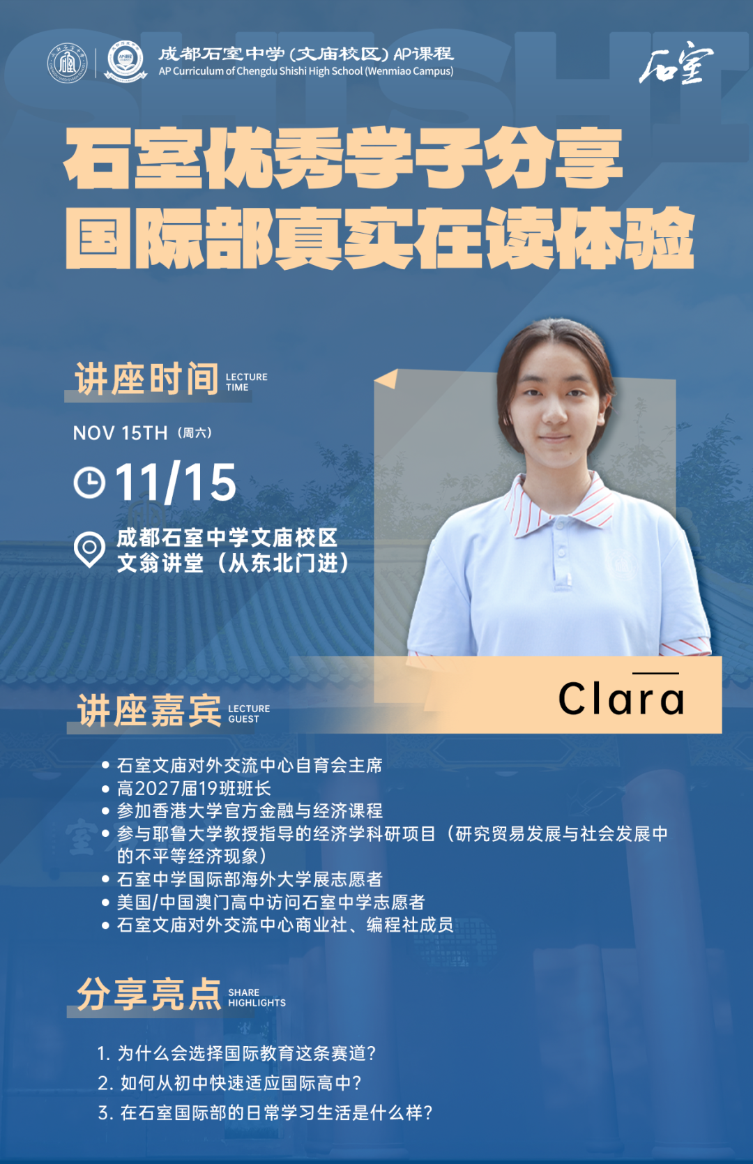 石室师生联袂分享国际教育