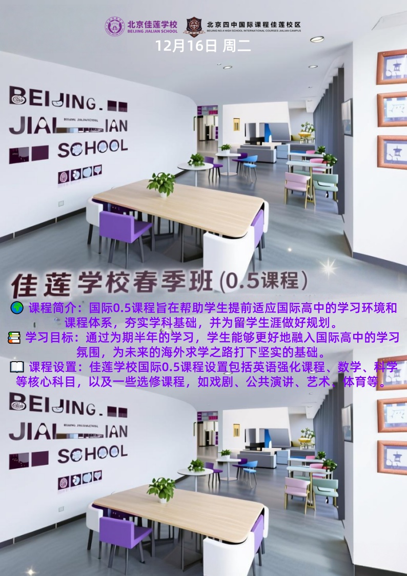 *北京四中国际课程佳莲校区招生考试、开放日报名通道已开启