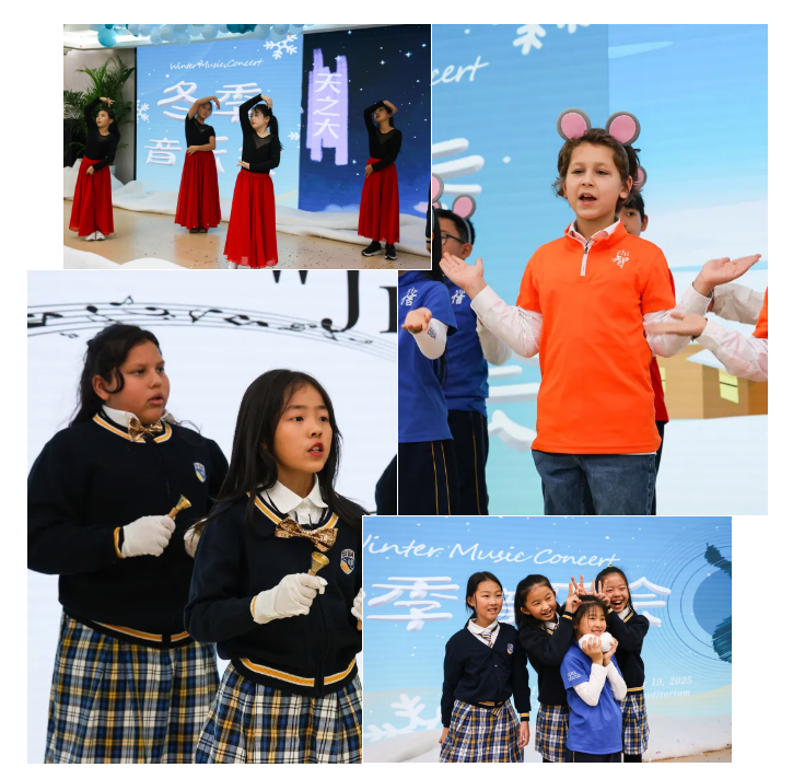 小学部的孩子们带来了《Polar Puppy》《I’m a Little Snowflake》《Mousie in the Snow》《Hip Hop Elves》《天之大 》《我会等》等歌曲,每个孩子都能在音乐的舞台以歌传情,以舞达意。真实而动人的不只是旋律本身,更是孩子们未经雕琢的纯真情感。