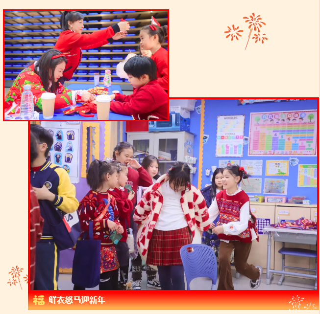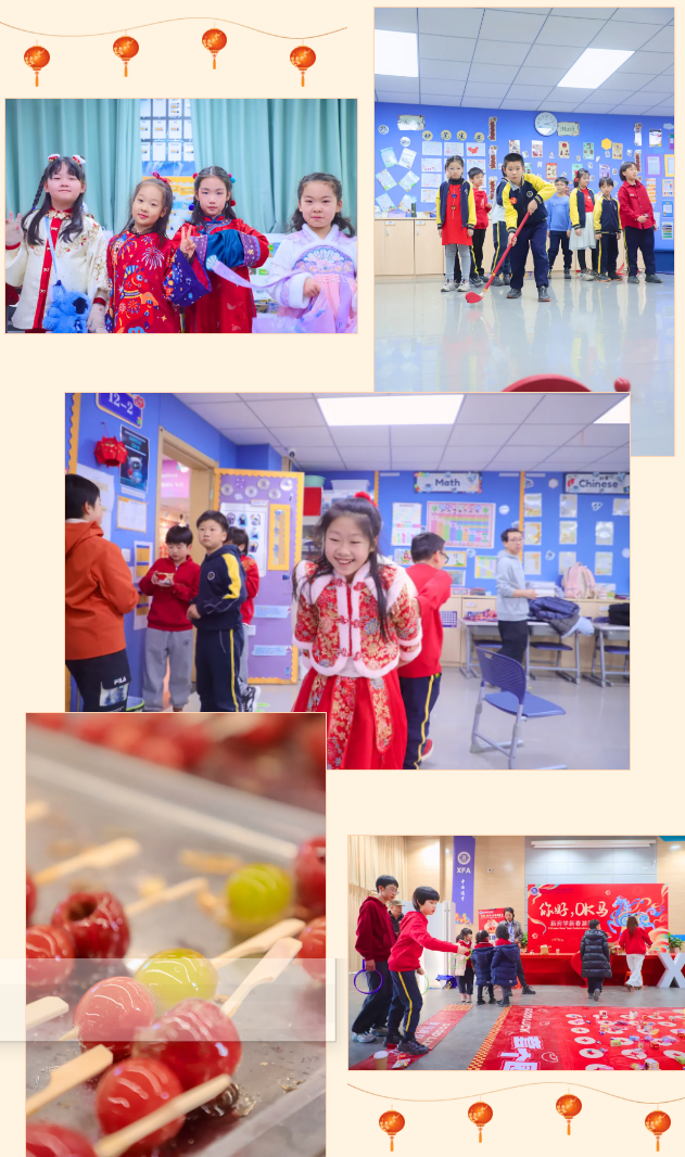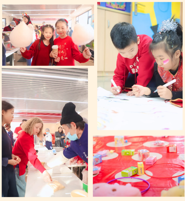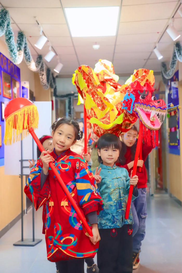 校园内张灯结彩、欢声阵阵,节日气氛愈发浓厚,年味交织,成为孩子们最生动的文化课堂。