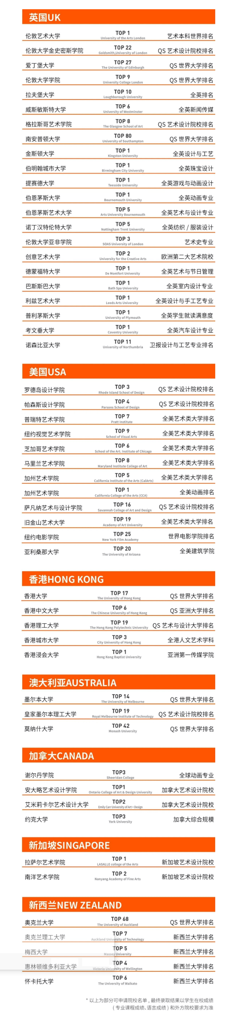 02 持有当年QS世界排名综合类前50名大学,或专业类世界前30名大学艺术设计专业录取通知书;