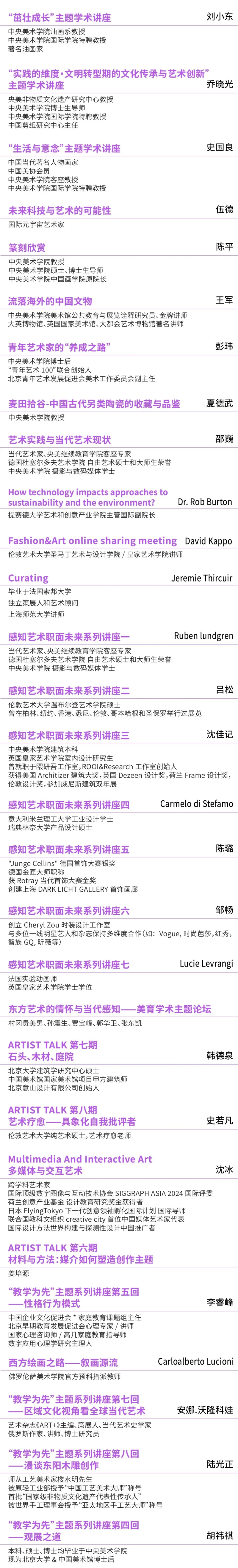 项目教学方式将合作式学习(Cooperative learning)、自主性学习(Autonomous learning)、研究性学习(Research-based learning)、体验式学习(Experiential learning)进行有机结合,同时设置丰富的艺术史及当代艺术理论课程、工坊课程、外出游学实践课程,艺术馆及画廊调研课程。依托央美优势教育资源,定期邀请艺术家及海外学校回国的业内设计师到校讲座交流,开阔学生视野、扩展创意思维、提升艺术素养,使学生在前两年本科课程学习中,达到英美艺术学校入学标准,以便攻读海外学位。