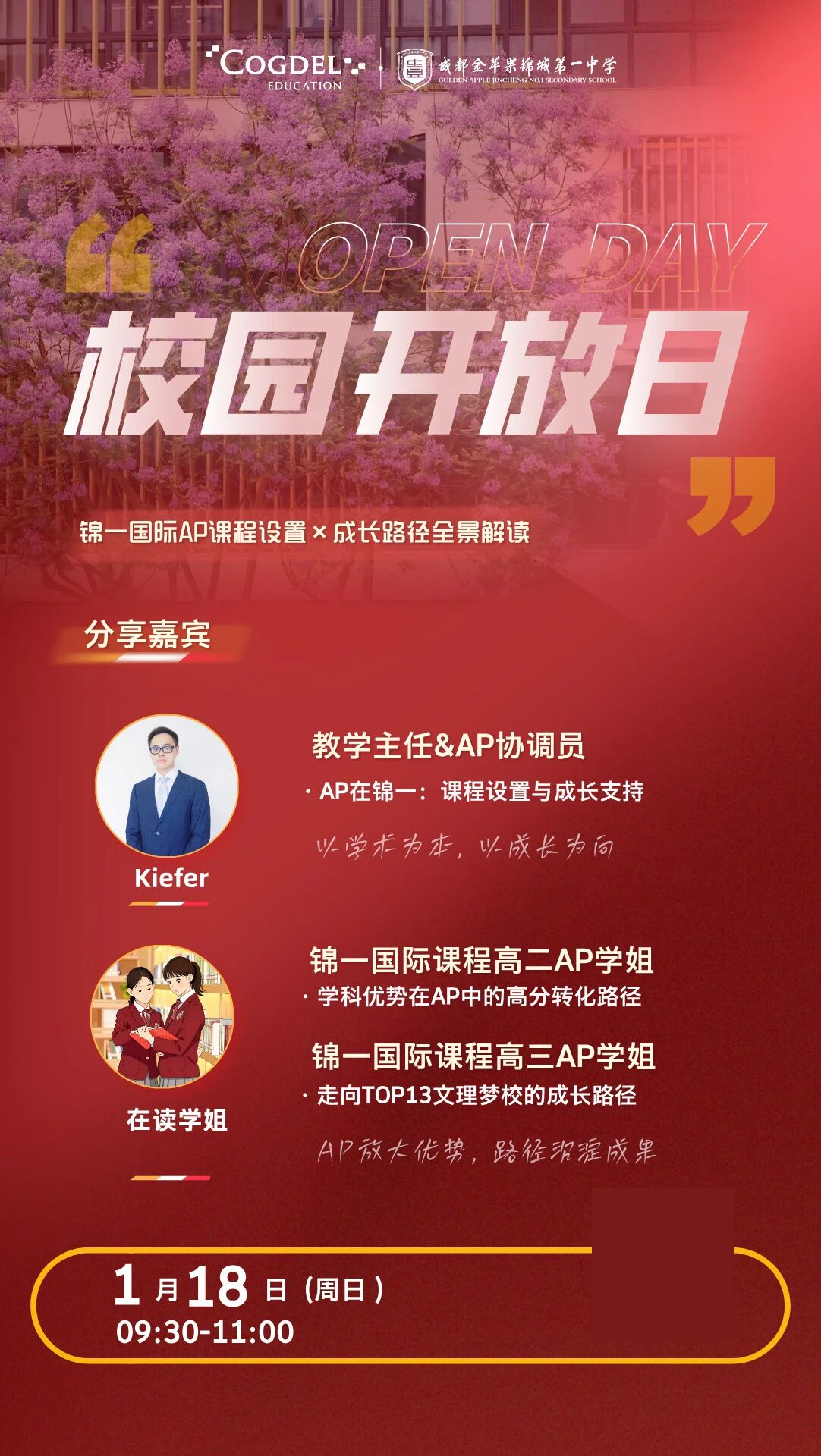 *金苹果锦城第一中学国际特色课程招生考试、开放日报名通道已开启 拨打电话 4008-200-288 ,招生老师将一对一为您解答疑问
