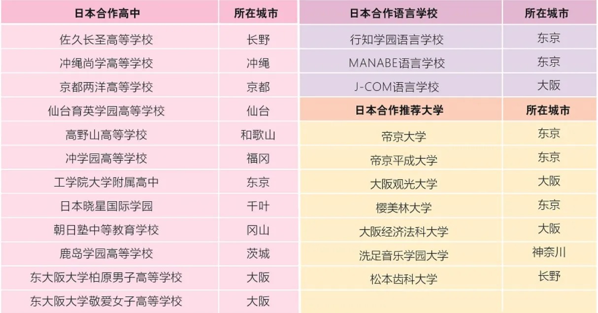 值得一提的是,朝阳义塾在日本各地拥有众多姐妹高中和合作大学,学生可与学校进行双向选择,入读心仪的日本学校。