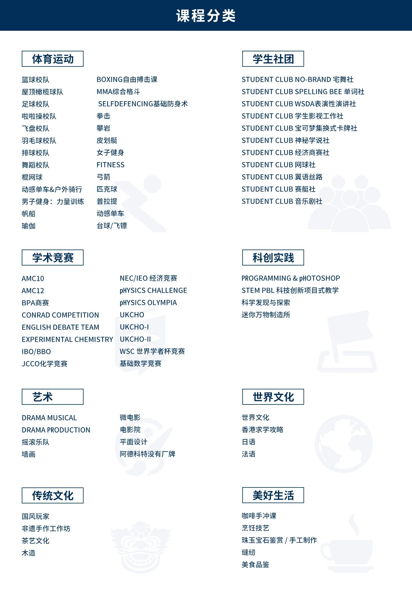 备注:课程开设会根据当学年学生选课情况略有调整,最终解释权归上海阿德科特学校所有。