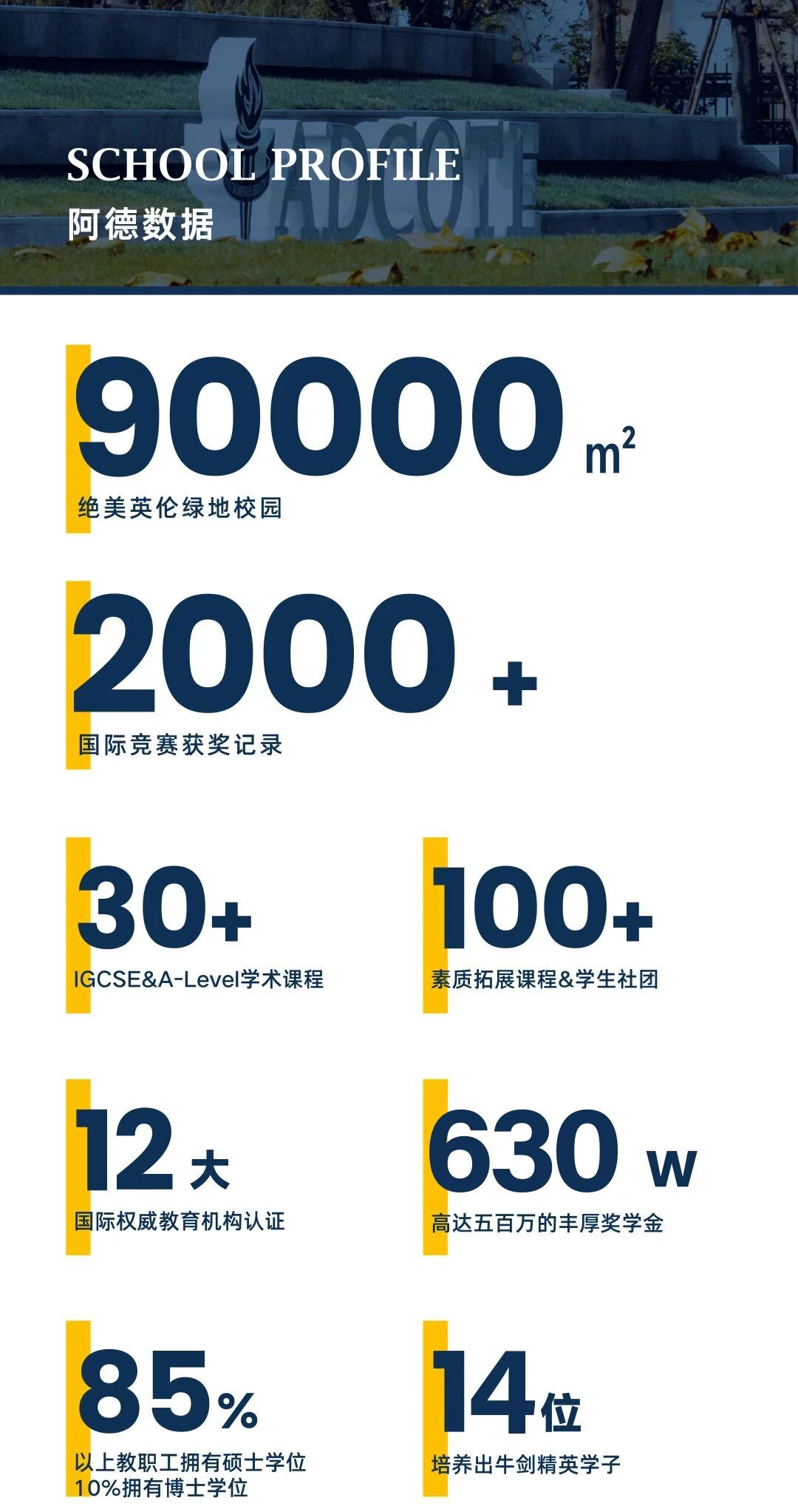 上海阿德科特学校是英国阿德科特学校的第一家海外分校,于2018年9月正式开学,创校至今已培养出共14位牛剑精英学子,数百名世界百强高校毕业生,其中四位牛津本硕连读。