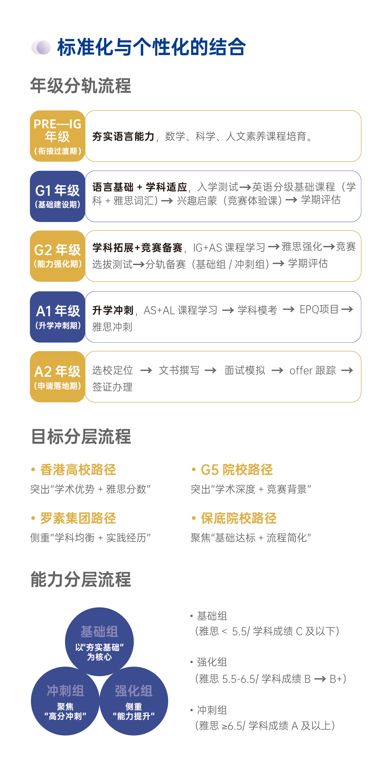 课程体系是办学方向的核心载体,书院精心构建IGCSE/A-LEVEL四年制课程体系,适配全球高校招生标准。G1、G2年级开设IGCSE课程,夯实学术基础、培养国际思维;A1、A2年级聚焦核心科目深耕,结合升学目标精准选课,全英文授课营造沉浸式语言环境,切实落实“赋能升学”核心方向。