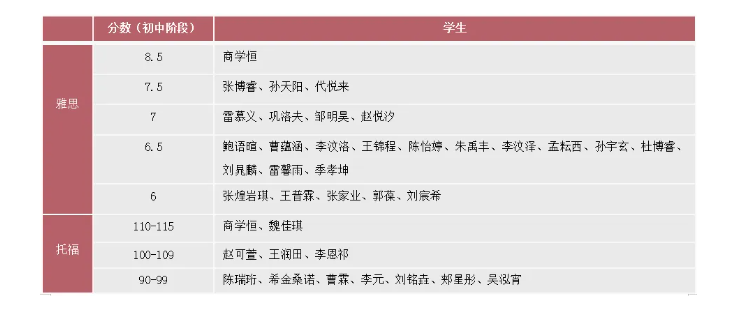在持续优化课程体系与教学实践过程中,学生语言能力提升转化为可量化、可验证的学习成果。近三年来,学生在雅思、托福等国际标准化考试中成绩优异,涌现出众多语言能力突出的优秀学子,为冲击牛津、剑桥及常春藤等世界学校奠定了坚实基础。