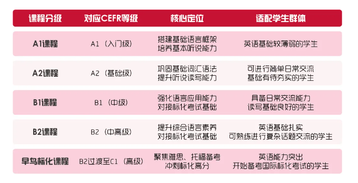 该课程深度对标国际通用语言能力标准,精准衔接国内外多元升学路径,既注重知识巩固,也强调素养提升。尊重学生个体差异与成长节奏,让基础薄弱者稳步进步,能力突出者突破上限,使每位学生都能在适合的学习轨道上提升英语能力,实现综合素养的全面发展,真正做到“以语言赋能成长,以视野拥抱世界”。
