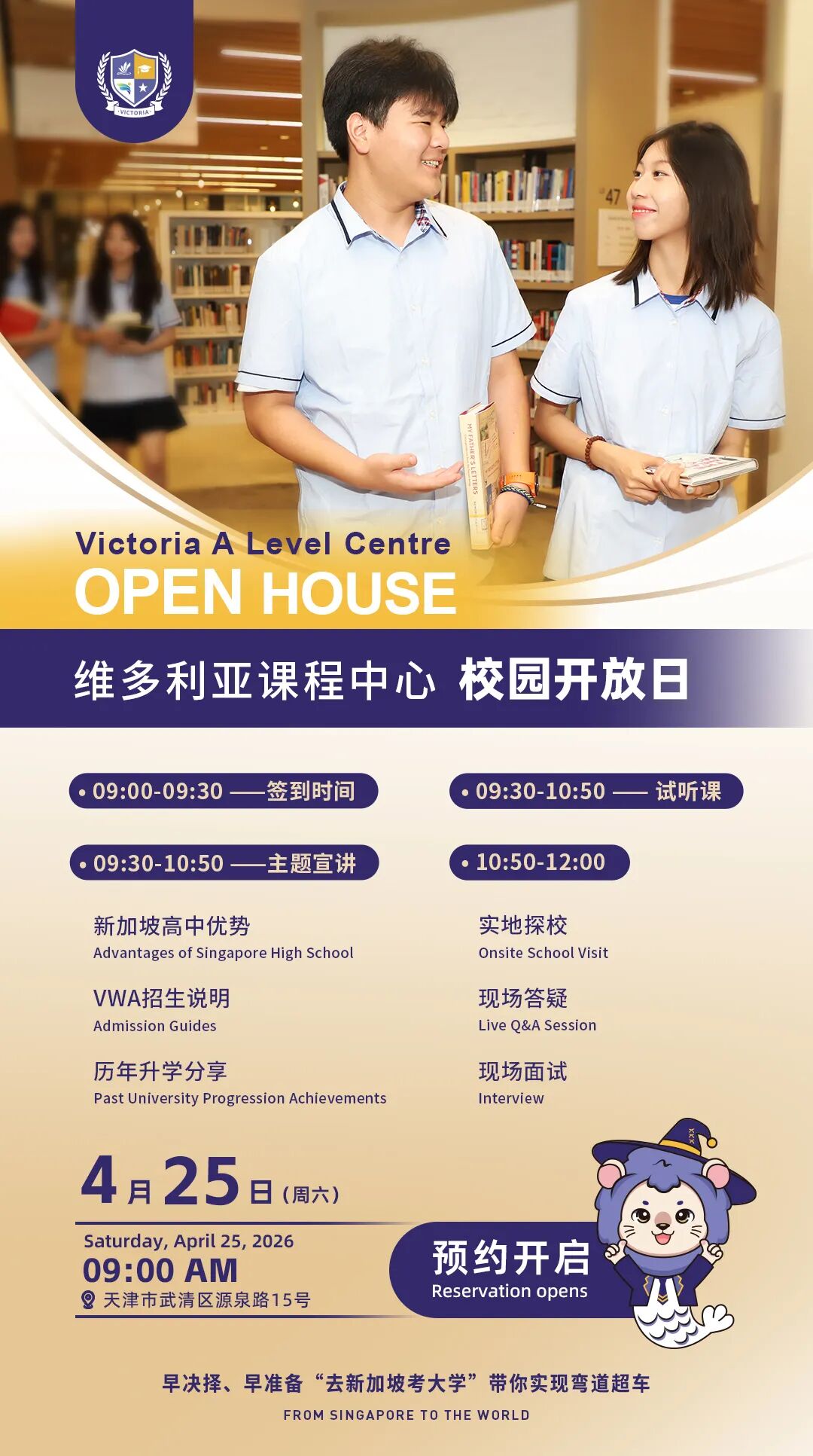 4月25日(周六)9:00维多A - Level课程中心校园开放日,可聆听宣讲、试听,实地走访校园,与学院共同规划契合孩子发展的升学路径。