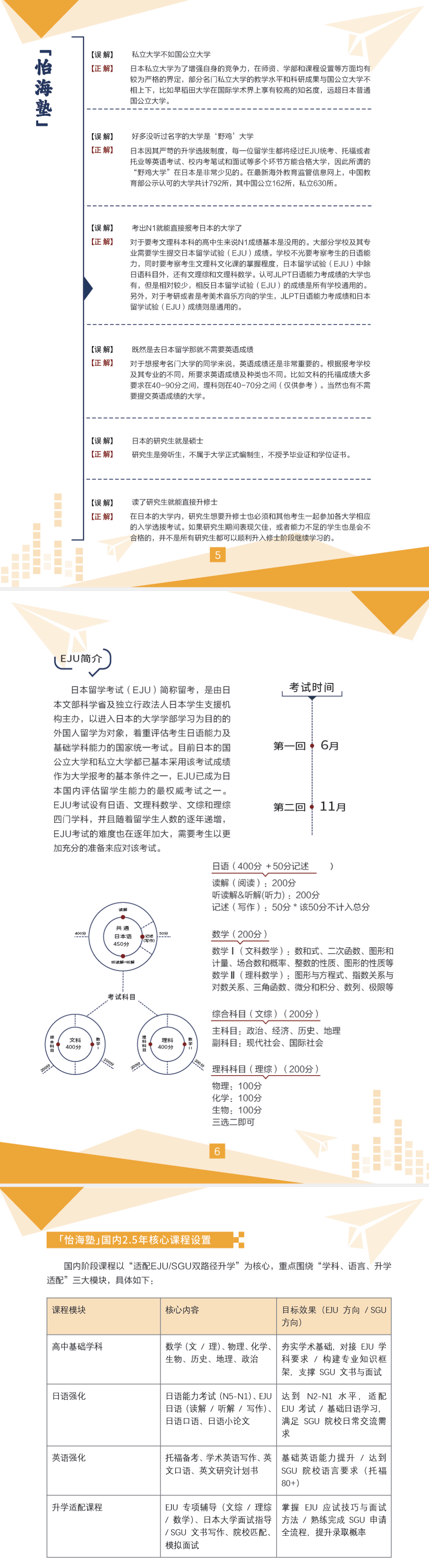 「怡海塾」针对不同学生能力与需求,构建 “EJU 考试 + SGU 英文申请” 双路径培养体系,国内 2.5 年精准适配两种升学方向: