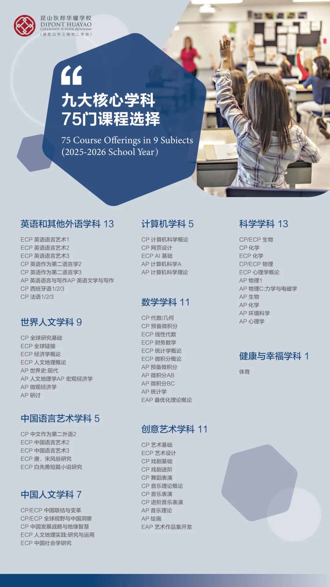 还有四大类延展课程涵盖学术拓展、运动与健康、运动与健康、艺术创意与社区服务的延展课程系统,让学生有充分空间在实践中发现热爱、试错、重构,再成长。