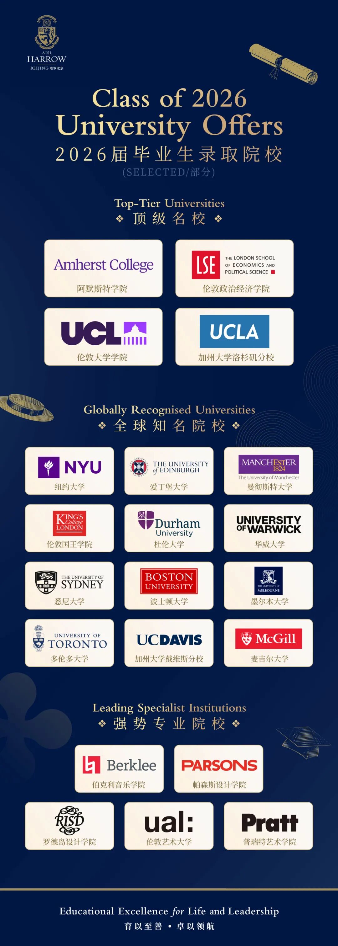 春风送暖,捷报频传。在竞争日益激烈的2026全球学校申请季,哈罗北京的学子凭借扎实学术功底、鲜明个人特质以及学校升学指导团队的精准护航,在国际舞台上大放异彩。