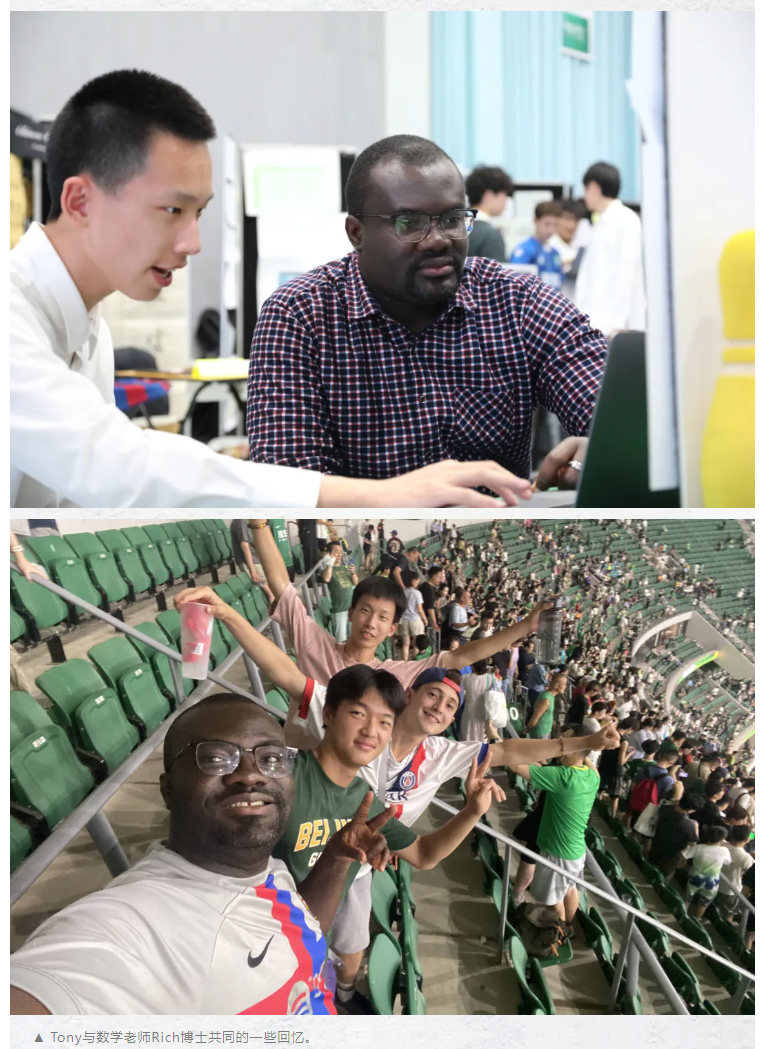 Tony在青苗学校所感受到的“安全感”,不仅仅是对环境的熟悉,更源于校园内温暖的人际关系。他与数学老师Dr. Rich的关系亦师亦友,堪称典范。在Rich博士眼中,Tony是“一个平衡的学生”,他对Tony的培养充满兴趣。他们在课堂上共同攻克大学难题,在球场上则支持不同的球队。Rich博士“试着和所有学生像朋友一样聚在一起”的教育理念,为Tony创造了一个可以完全放松、被无条件接纳的心理空间。妈妈发现,Tony甚至会把自己的个人隐私告诉Rich博士,而Rich博士不会仅从老师的角度给予评价,更多的是从朋友的立场给出看法和建议。妈妈对此十分感激,认为Tony在中学阶段能遇到这样一位亦师亦友的导师是非常幸运的。