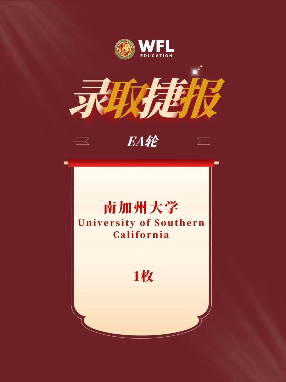 在本轮录取中,美国世外泉谷学校有一名学生成功获得南加州大学的录取通知书。