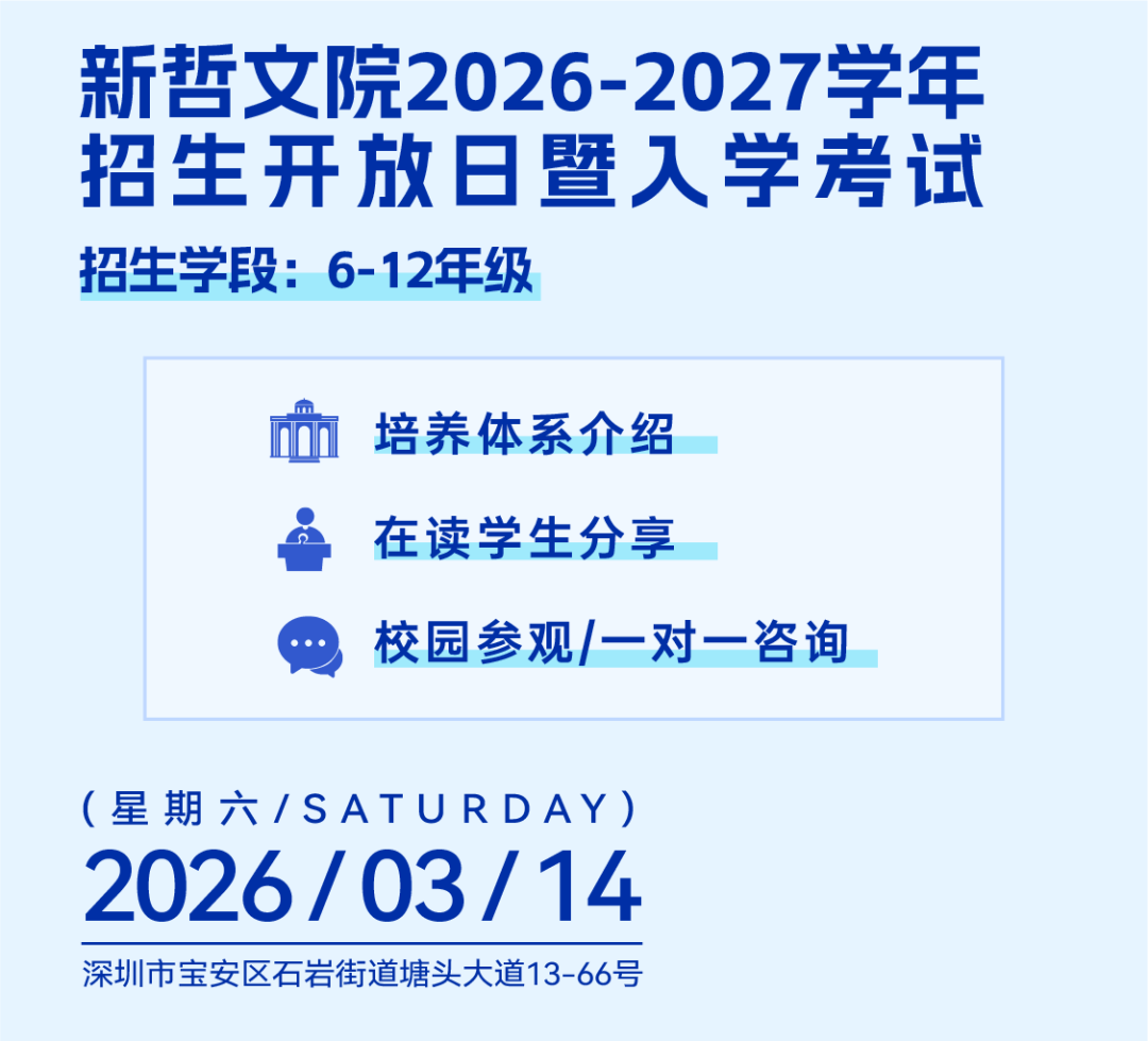 深圳实验学校国际教育基地暨深圳新哲文院, 渊源于深圳实验学校的国际教育体系。深圳实验学校是深圳国际教育的先行者,深圳第一个哈佛大学本科生和第一个麻省理工学院本科生均出自实验门下。实验国际教育基地暨深圳新哲文院由实验国际教育逐渐体系化,逐渐成熟而来,从零散自发,到独立成班,再到独立创校,在十多年的发展中,我们的国际教育申请成绩屡创佳绩,毕业生遍布英美学校,英国牛津大学、剑桥大学,加拿大多伦多大学,美国常春藤盟校又或历年全美前十学校,如 普林斯顿大学、哈佛大学、耶鲁大学、麻省理工学院、芝加哥大学、斯坦福大学、宾夕法尼亚大学、哥伦比亚大学、杜克大学、康奈尔大学、 布朗大学等到处都有我们校友的身影。